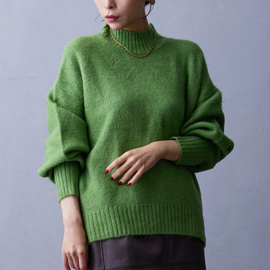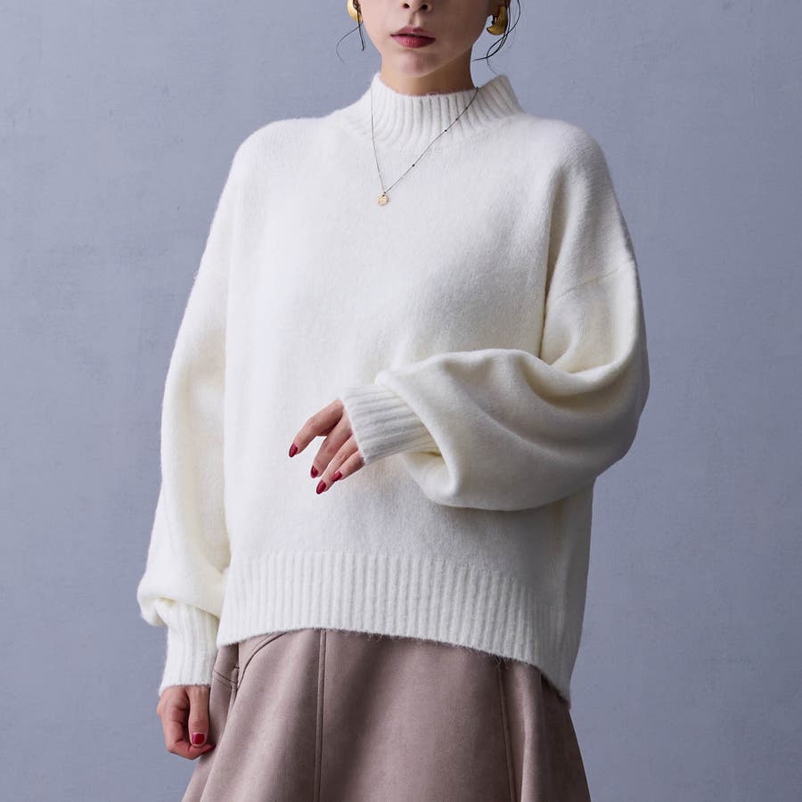 ふわっと起毛感のある素材でシーズンムードが高まるニット。