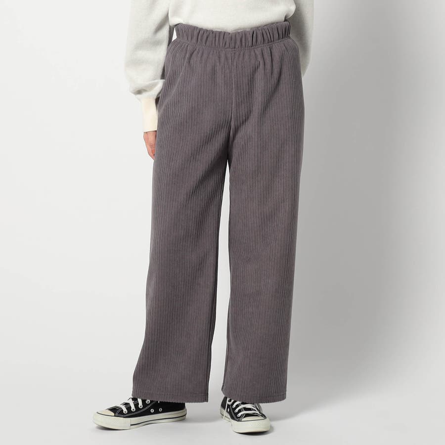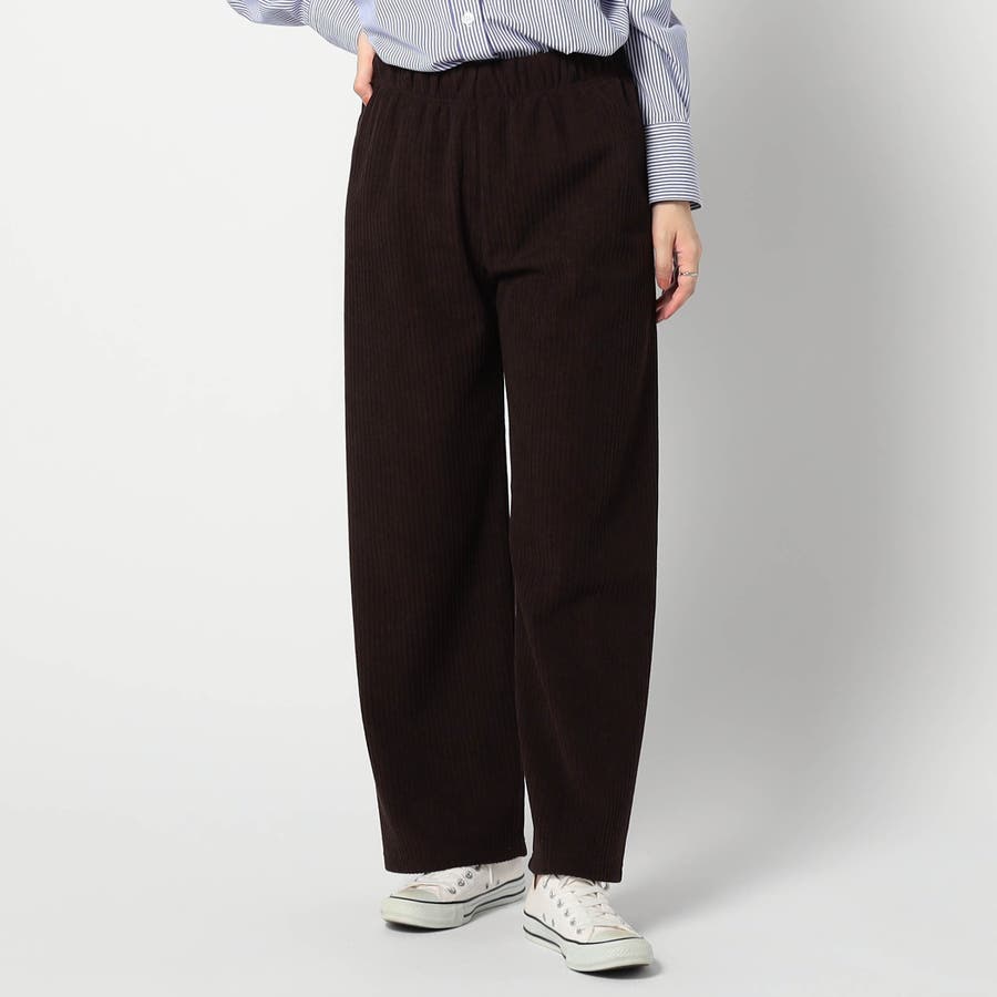 表はコーデュロイ風、内面はなめらかな起毛のボンディング素材を使ったイージーパンツです。