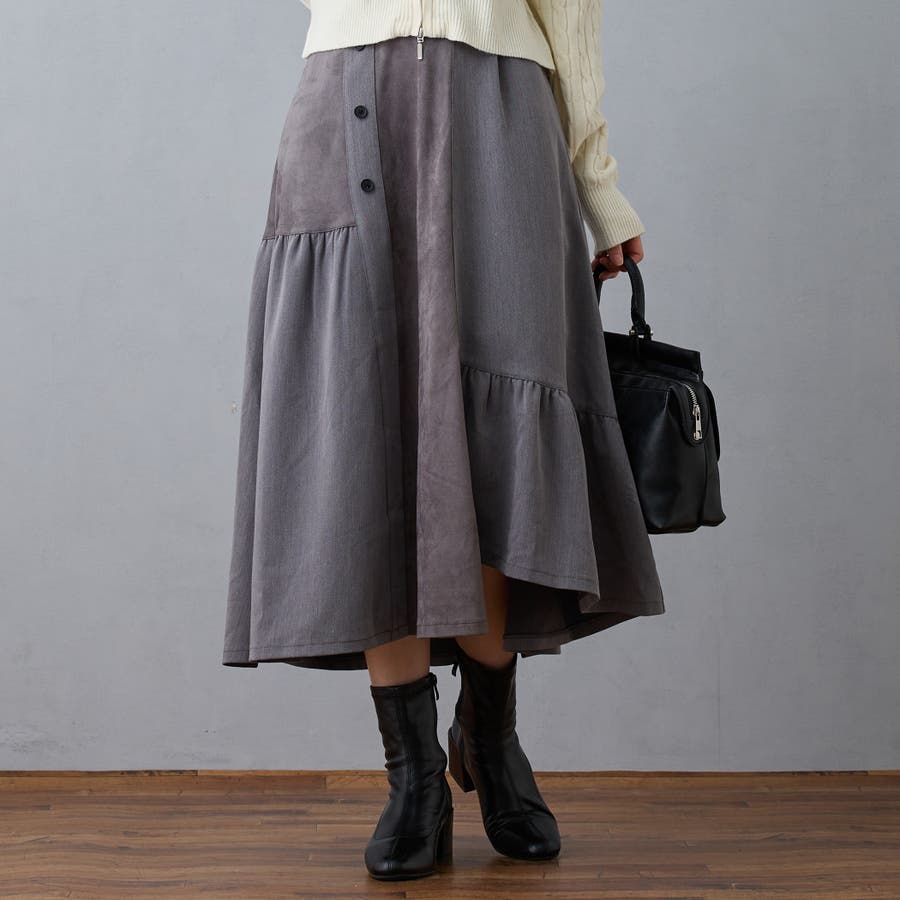 スエード調の起毛素材との異素材使いが秋冬らしい一枚です。