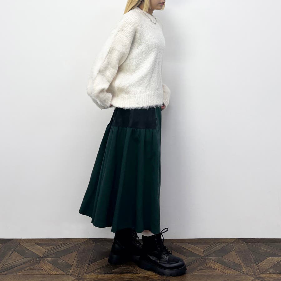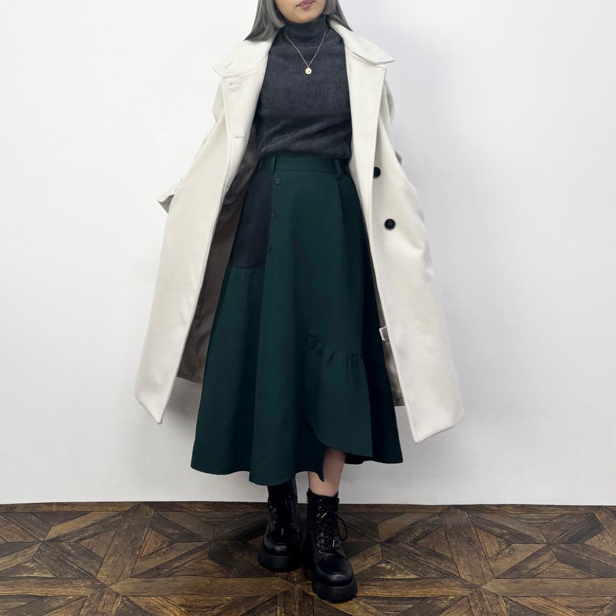 腰回りはすっきりとさせ厚手のニットとの合わせでも着ぶくれしないようにしつつも、裾はフレア分量をたっぷりととり動きのあるシルエットになるようこだわりました。