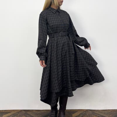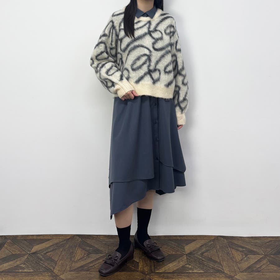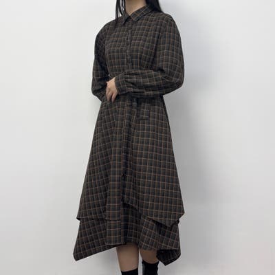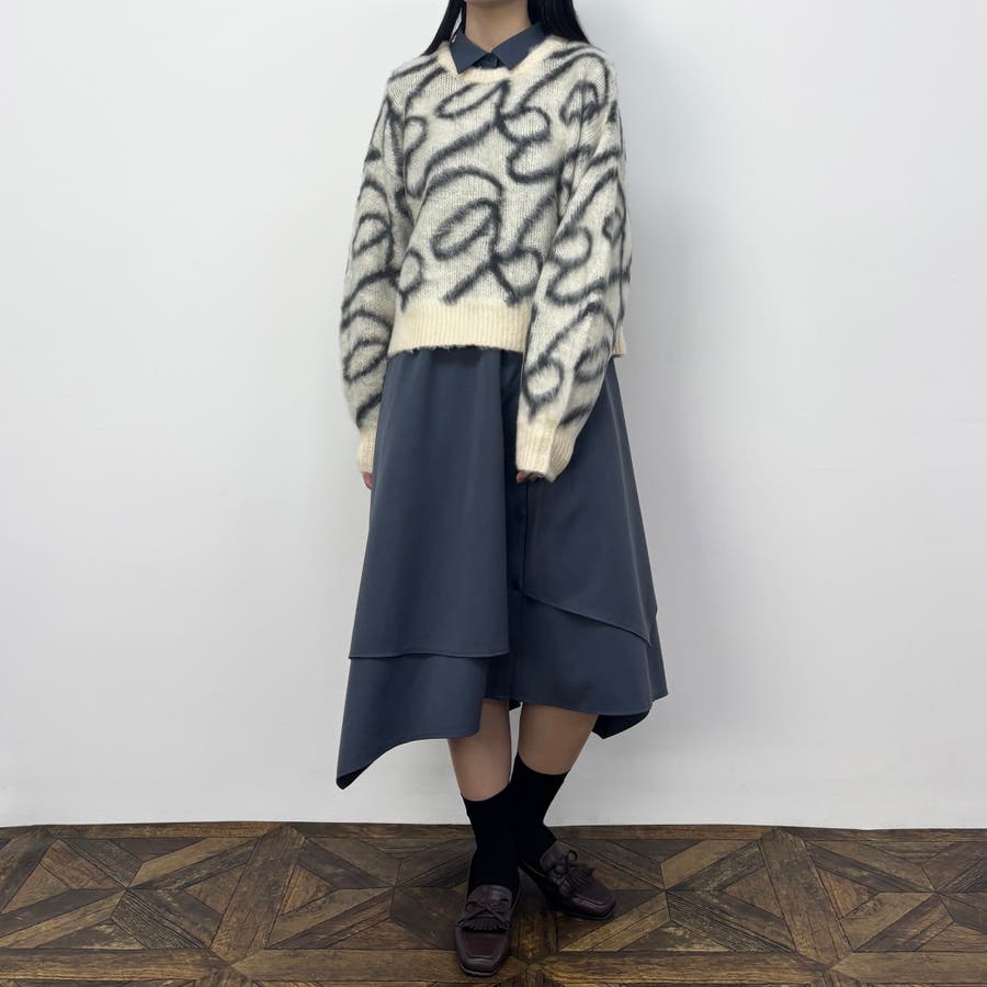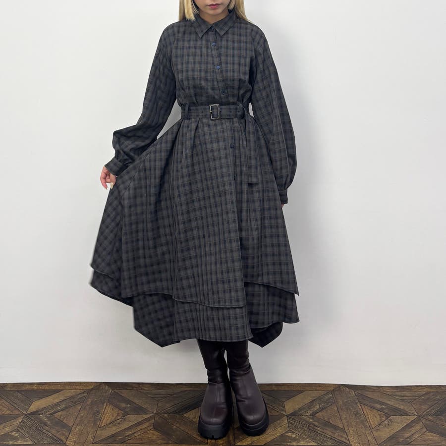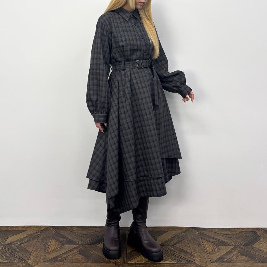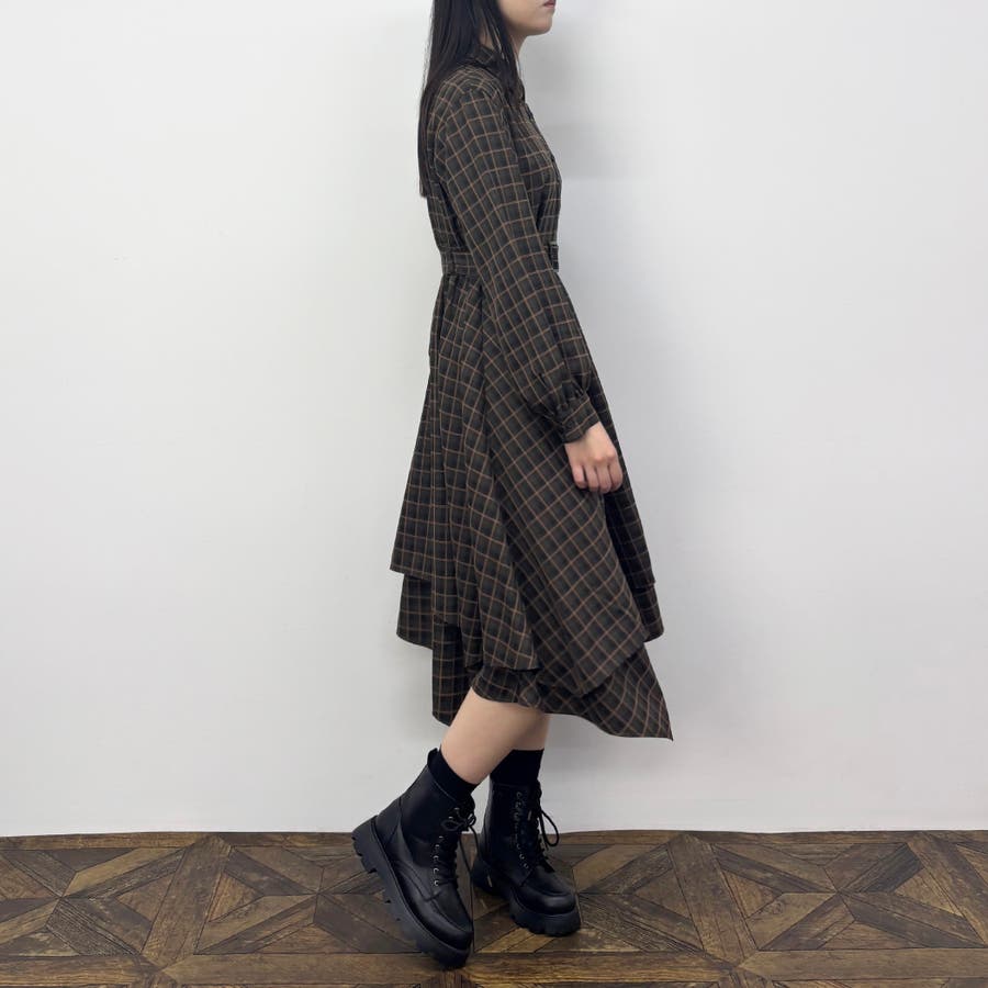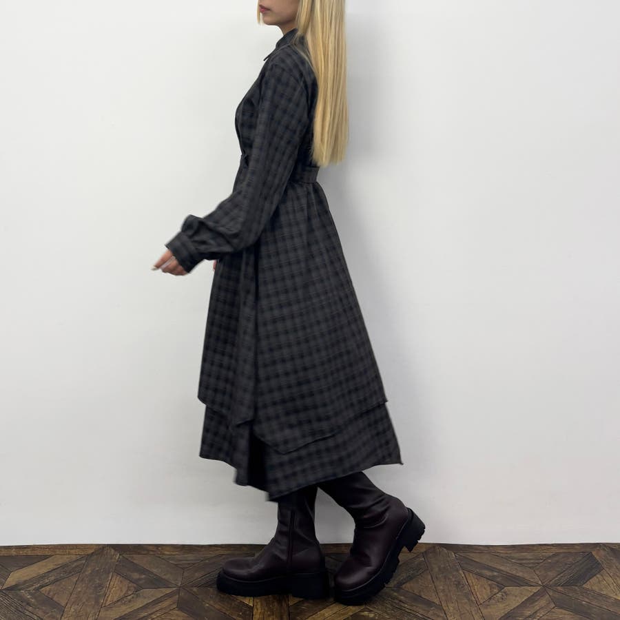 レイヤードデザインのスカート部分は立体感があり、一枚でも着映えするワンピースです。