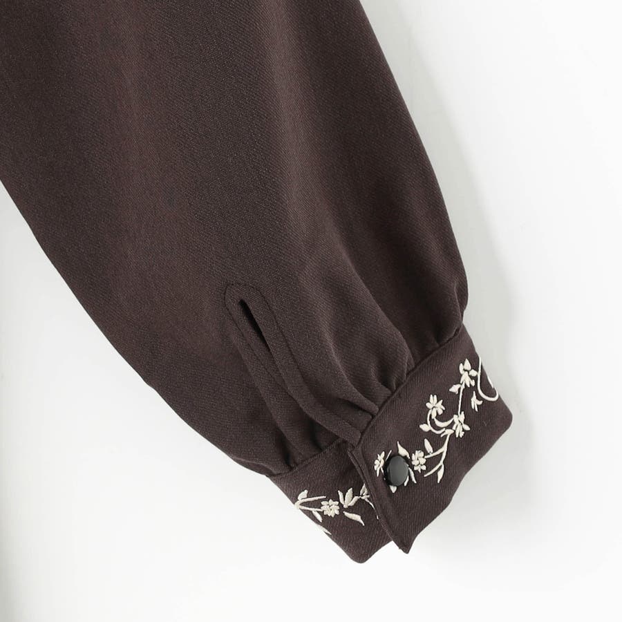 オリエンタル刺繍BLのデザインを取り入れた一着で袖口にもサイズ違いの刺繍が施されておりベストなどレイヤードした時にもデザインが見えるのがポイント。