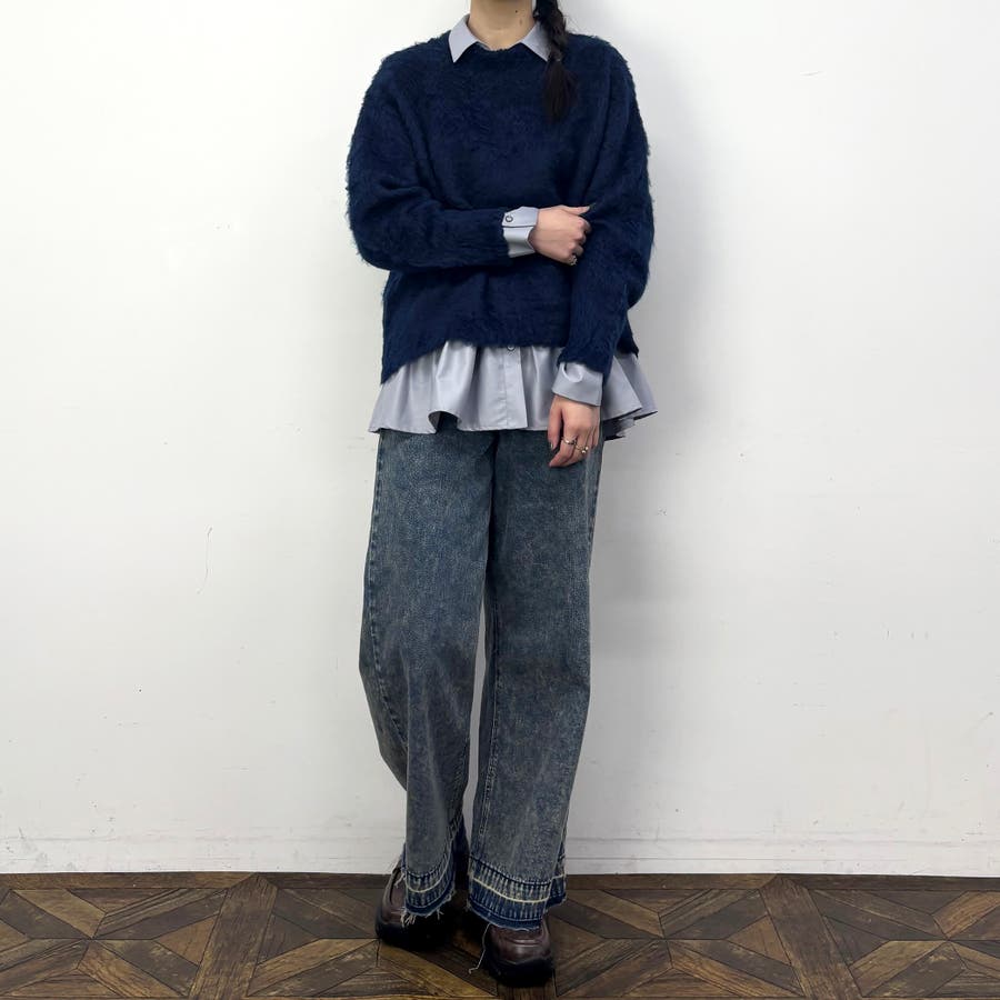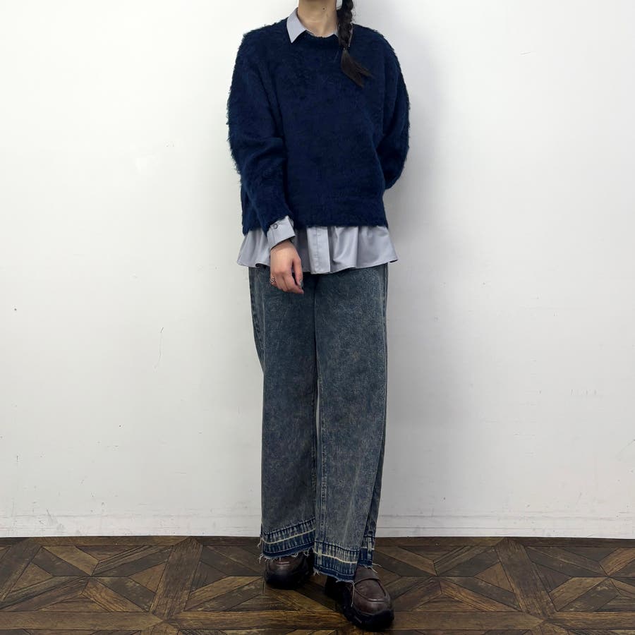 シャギークルーネックプルオーバー