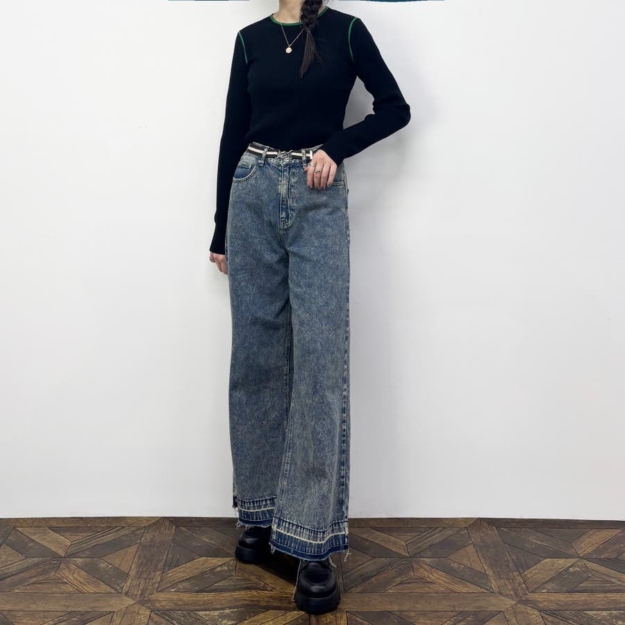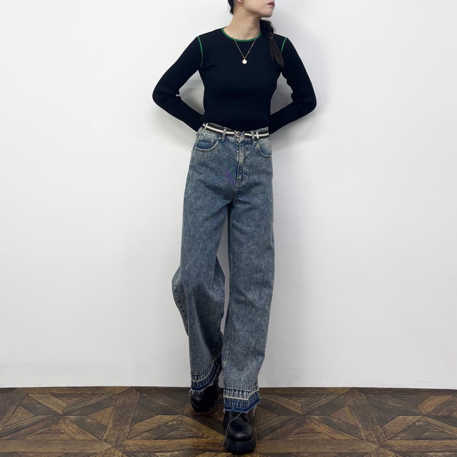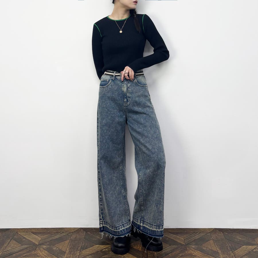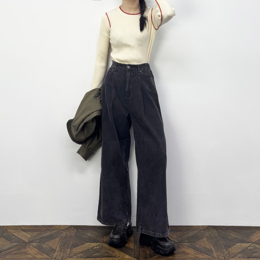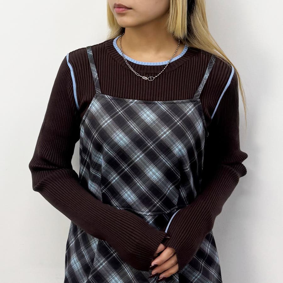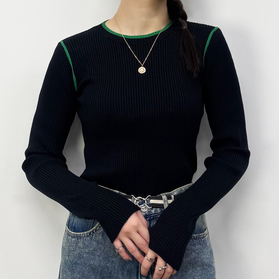 袖下やアームホールといった少し珍しい位置がさりげなく配色ラインになっておりレイヤードした時に見えるのがポイント◎