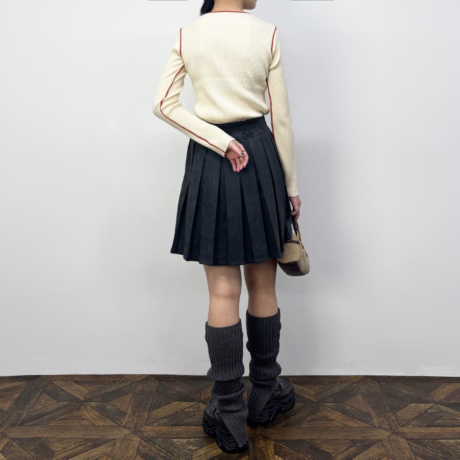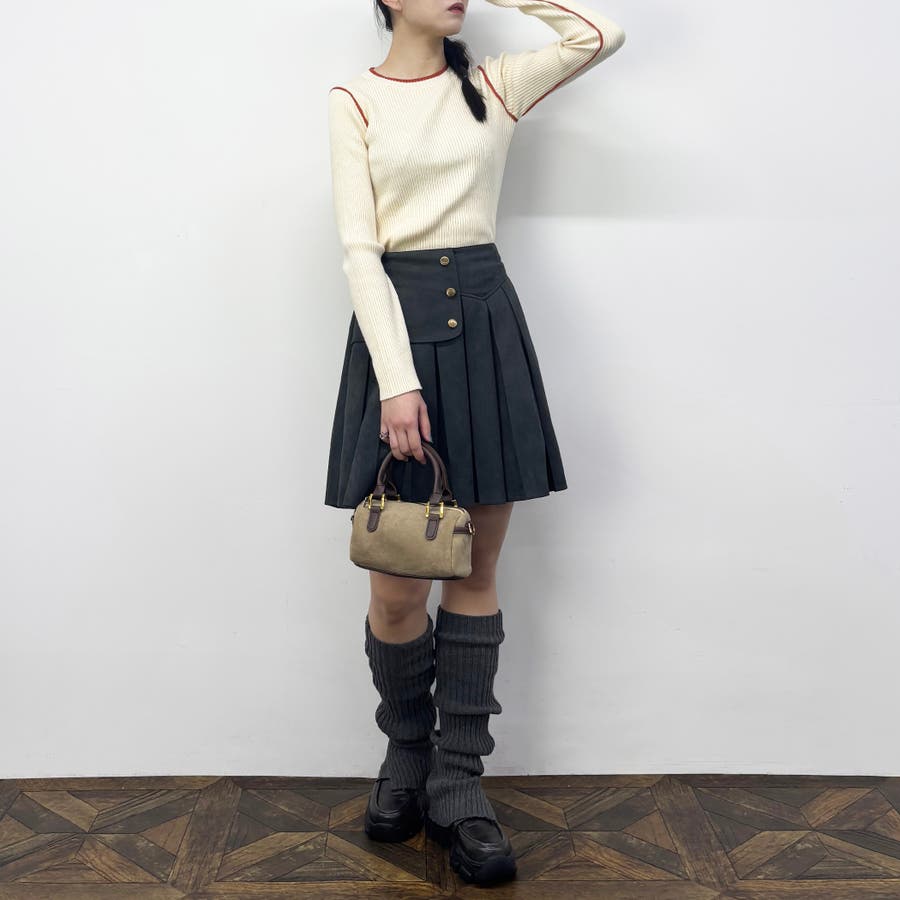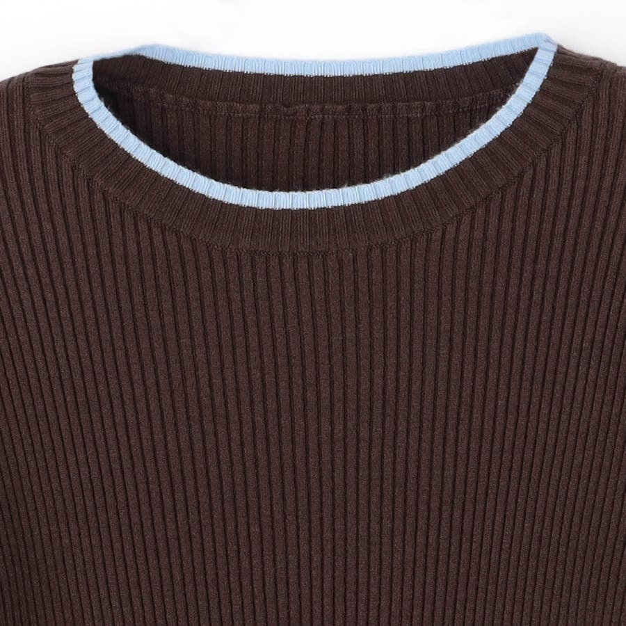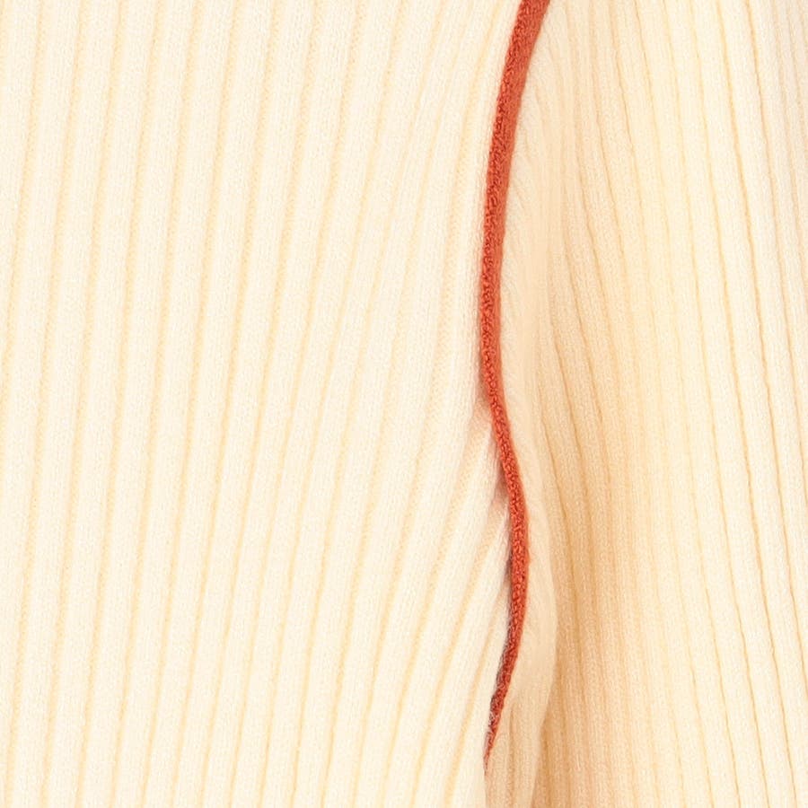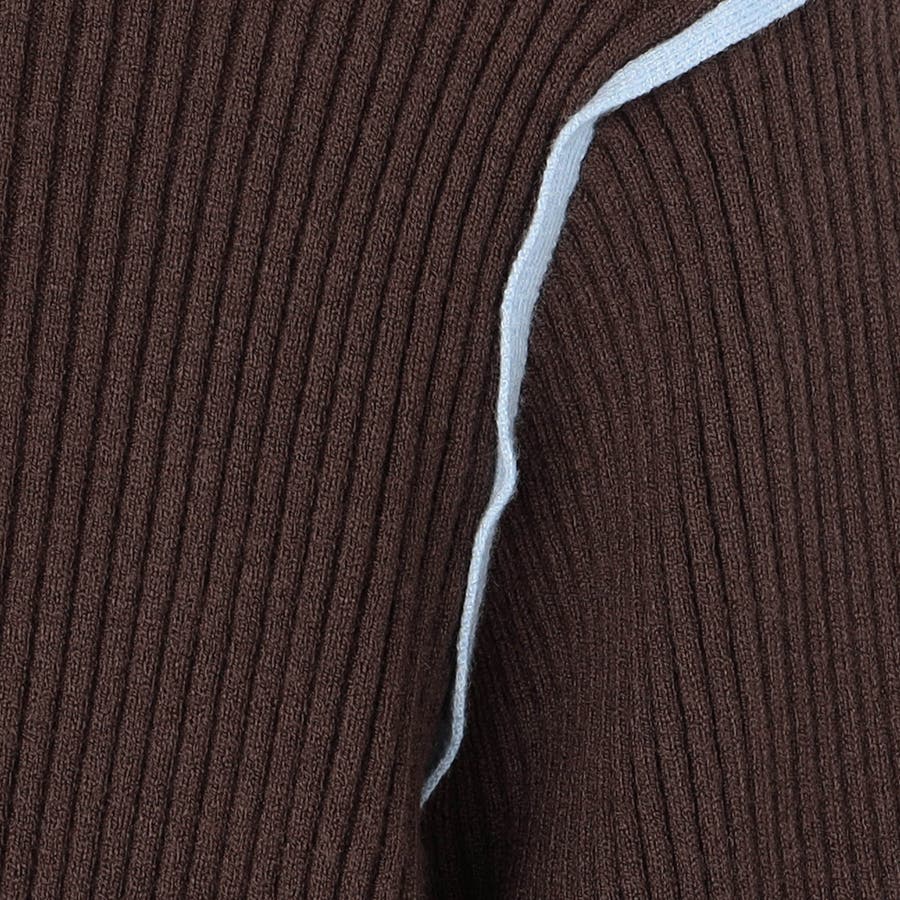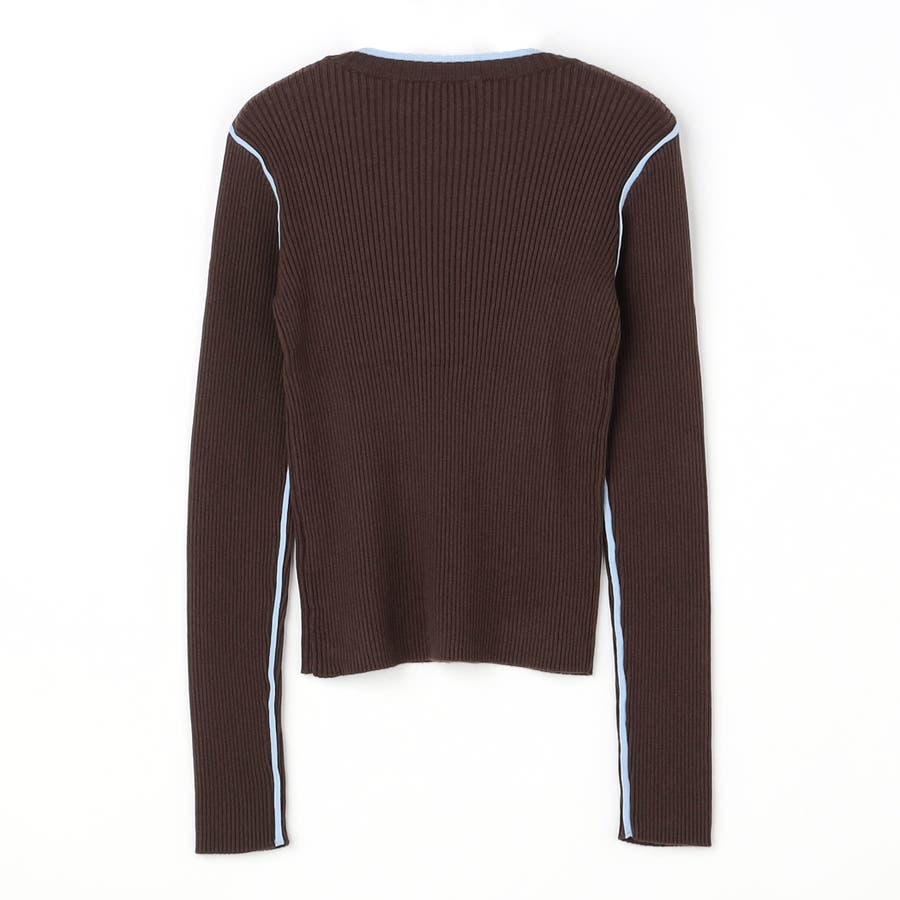 襟ぐりも一部配色になっているためVネックカーディガンなどを羽織った際にもアクセントになります。