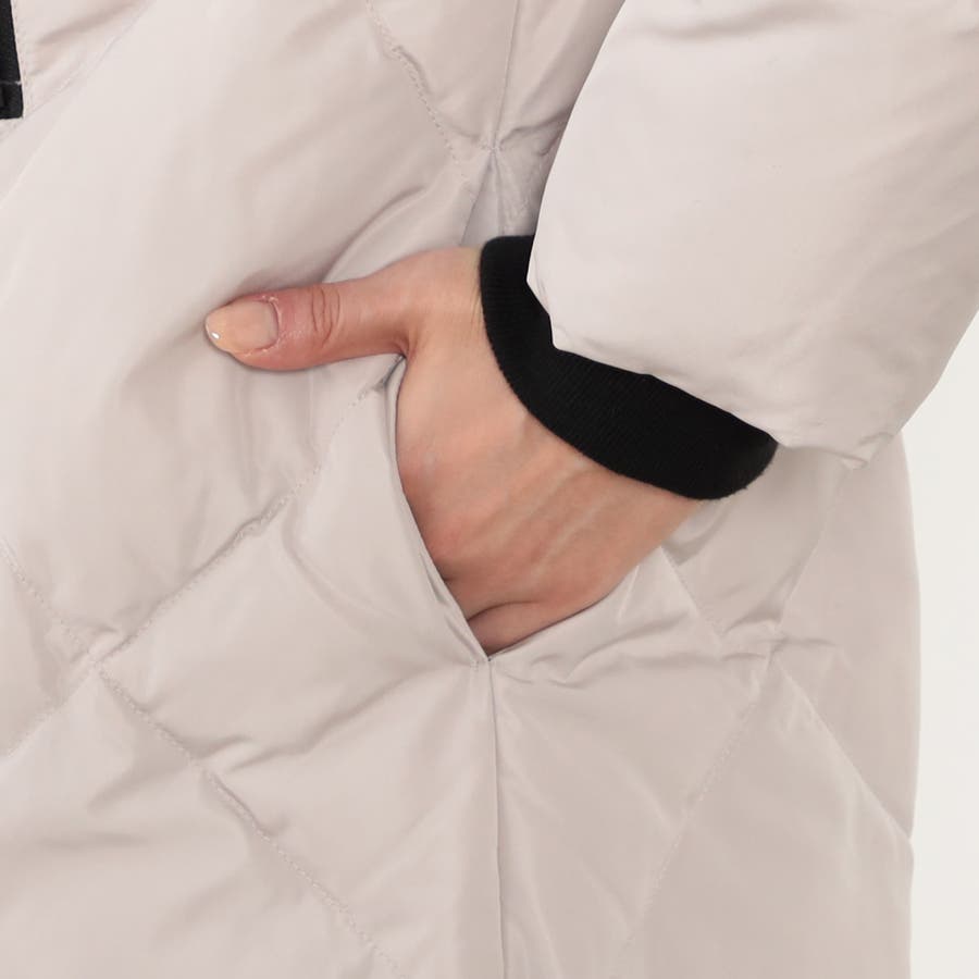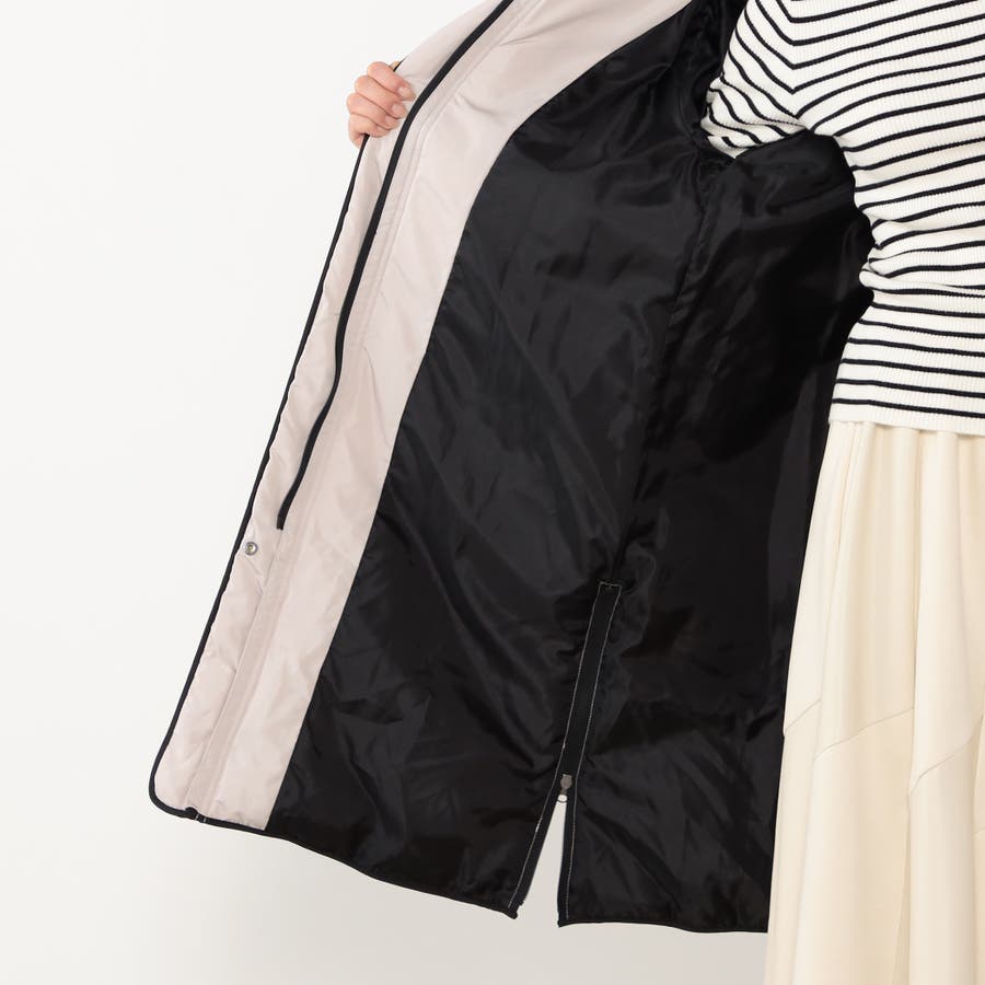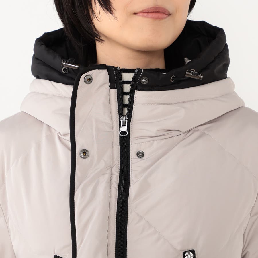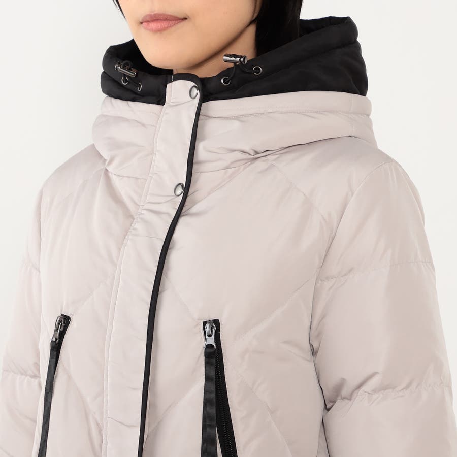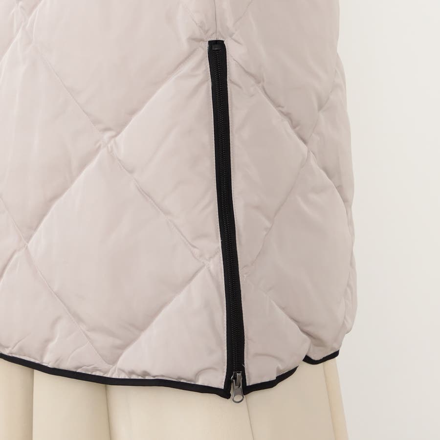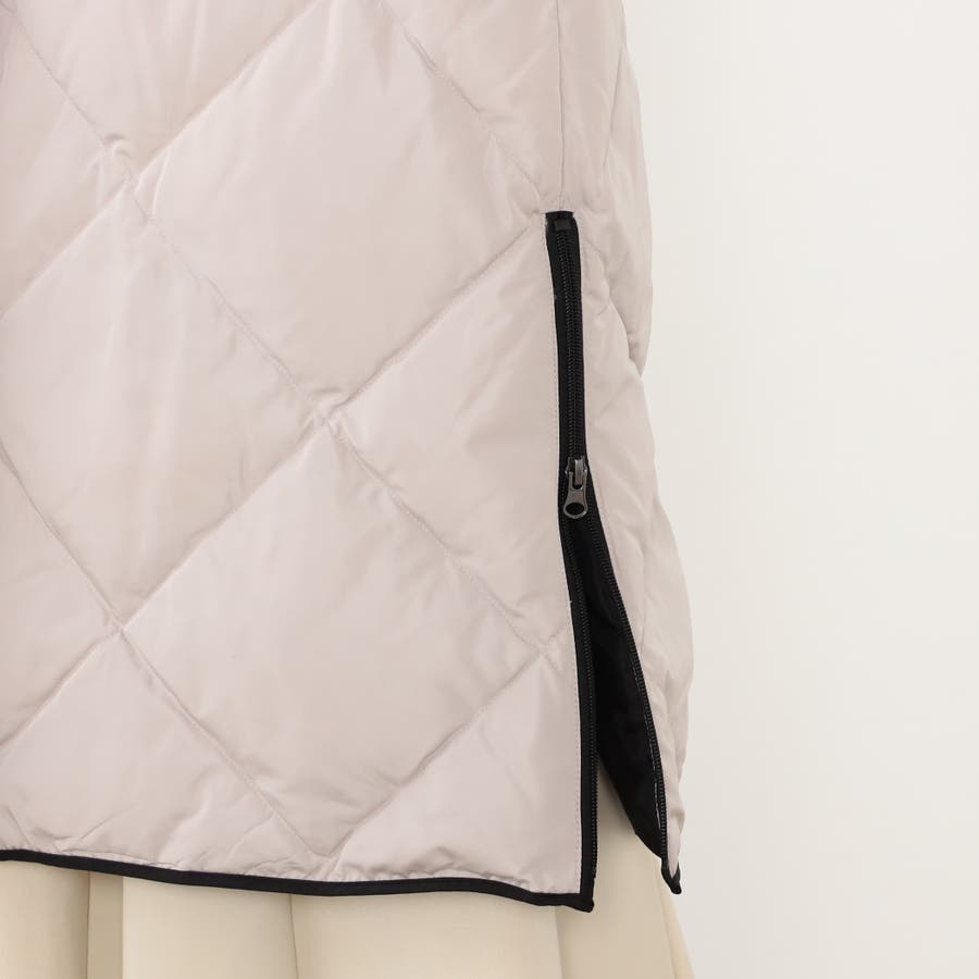 ◆デザインは前後の身ごろにダイヤ柄ステッチ、前立てスタンドネックフード付き袖口はリブ仕様、裾脇のファスナーによりスリットの長さ調整が可能です。ベージュは前立ての配色仕様もポイントです。