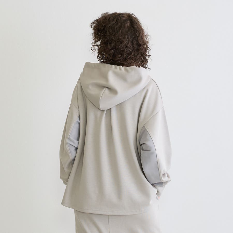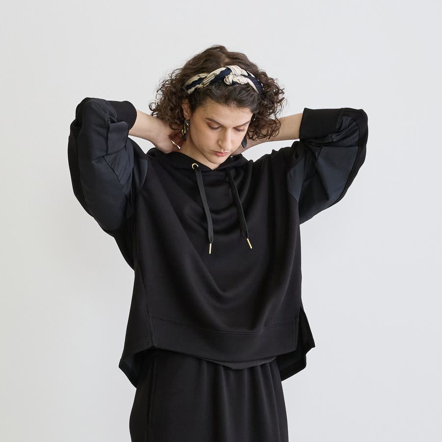 異素材使いの切り替えデザインがおしゃれに決まる大人リラクシーなセットアップです。
