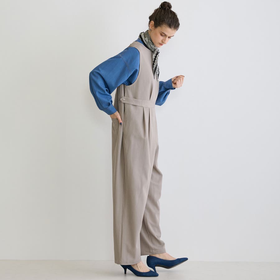 体型を拾わないオールインワンは、一枚で存在感のある着こなしが楽しめます。