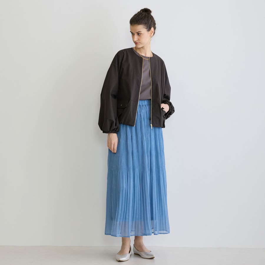 ノーカラーなので首元がスッキリみえ、スカーフなどの巻物アイテムとの相性も良くおススメです。
