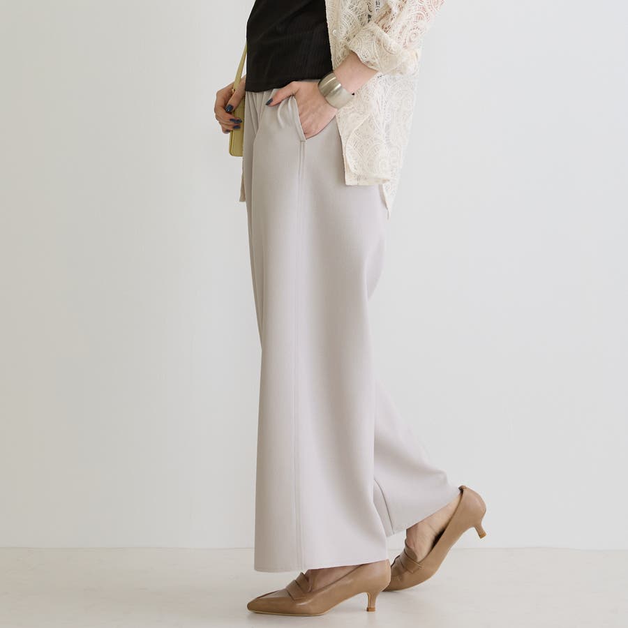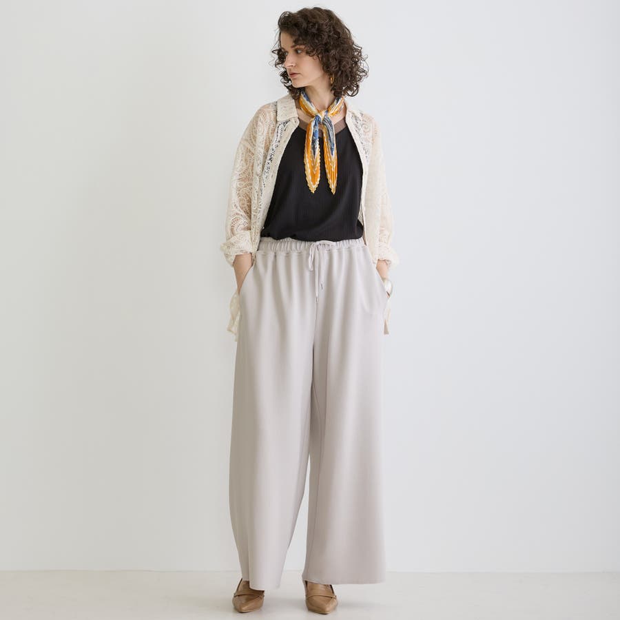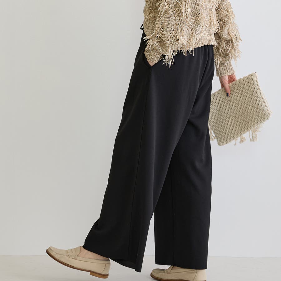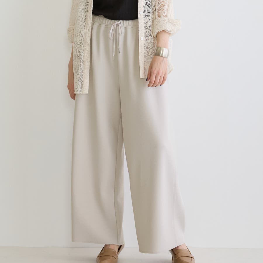ゆったりとしたワイド丈とウエストゴムがストレスフリーなイージーパンツ。