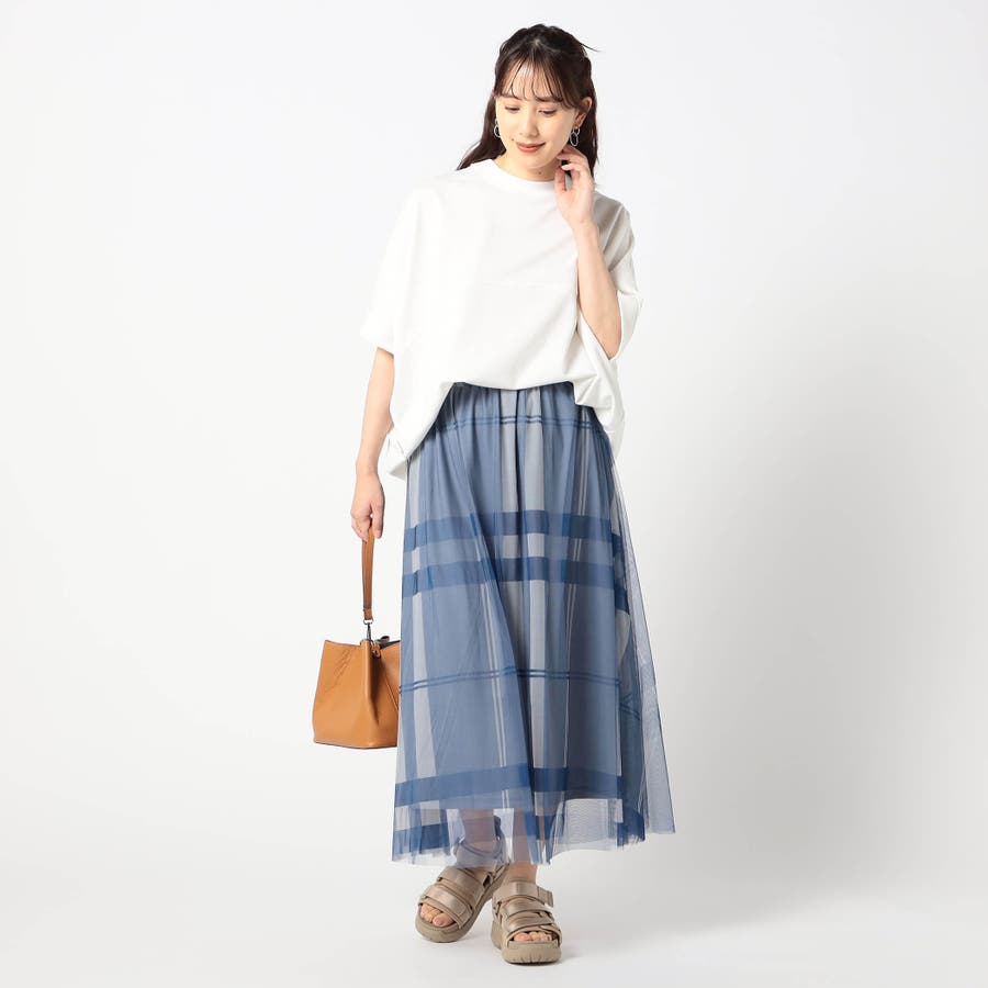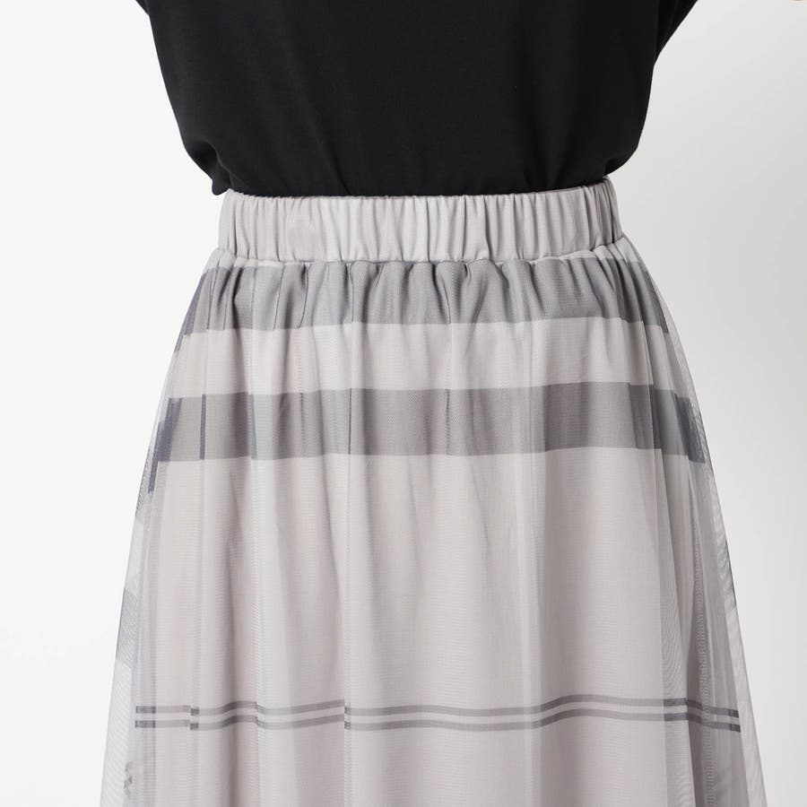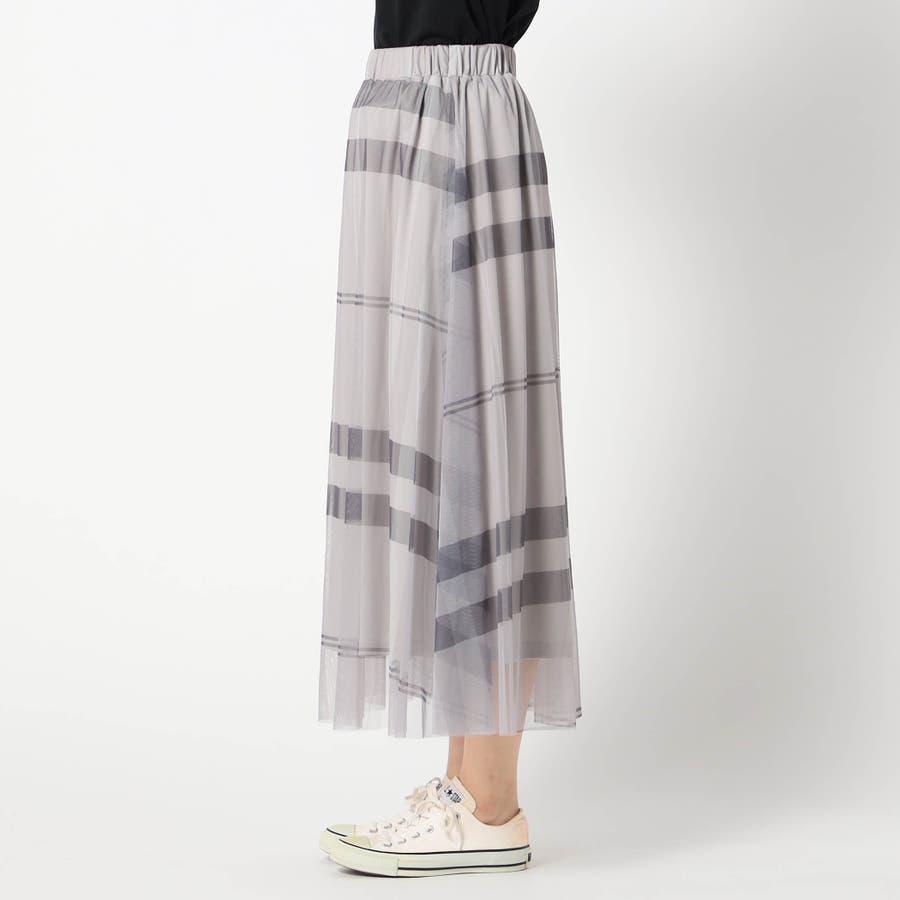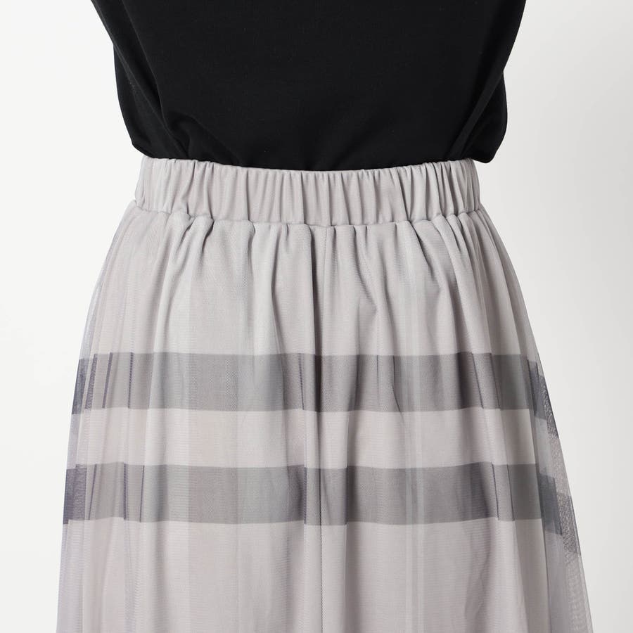チュール素材にチェック柄をプリントしたロングスカートに新色が登場です。