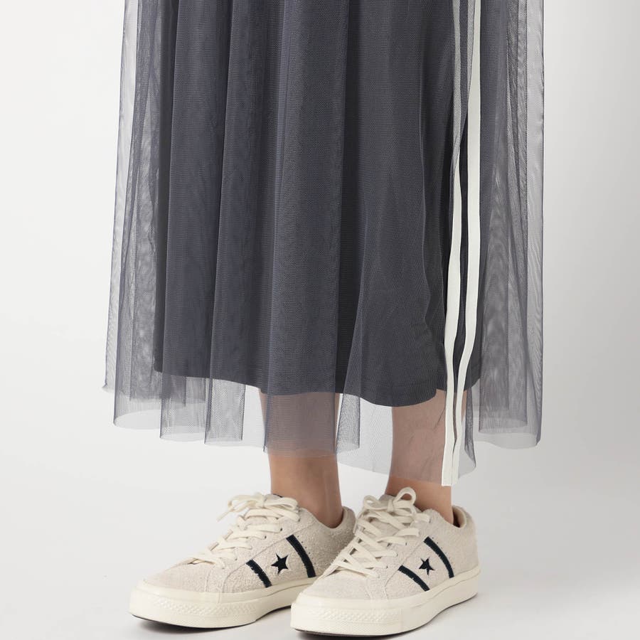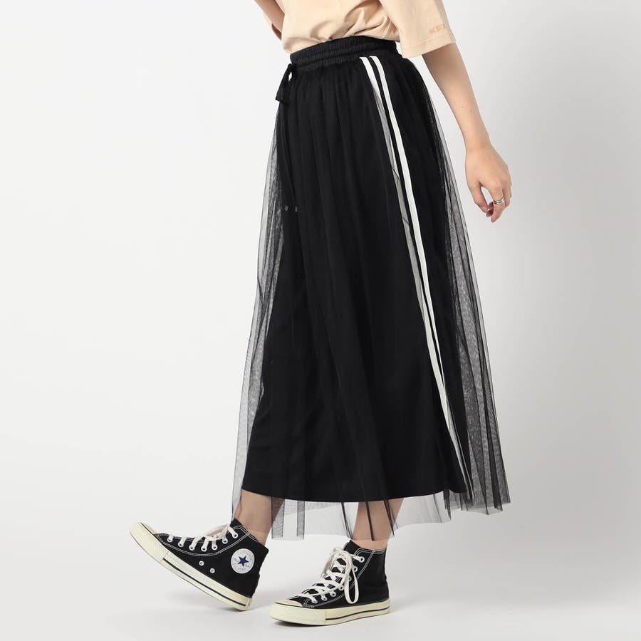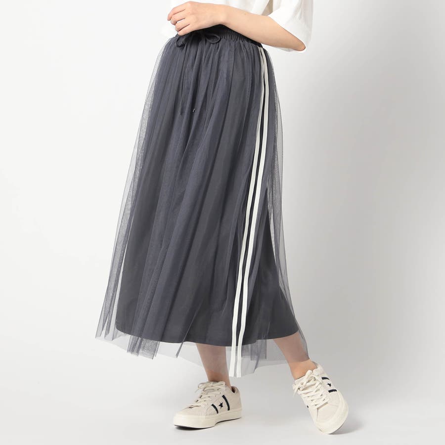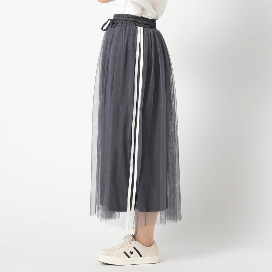 トレンドのラインをサイドに入れた、スポーツMIXなチュールスカートです。