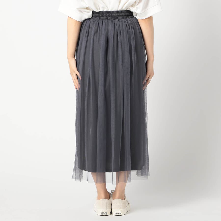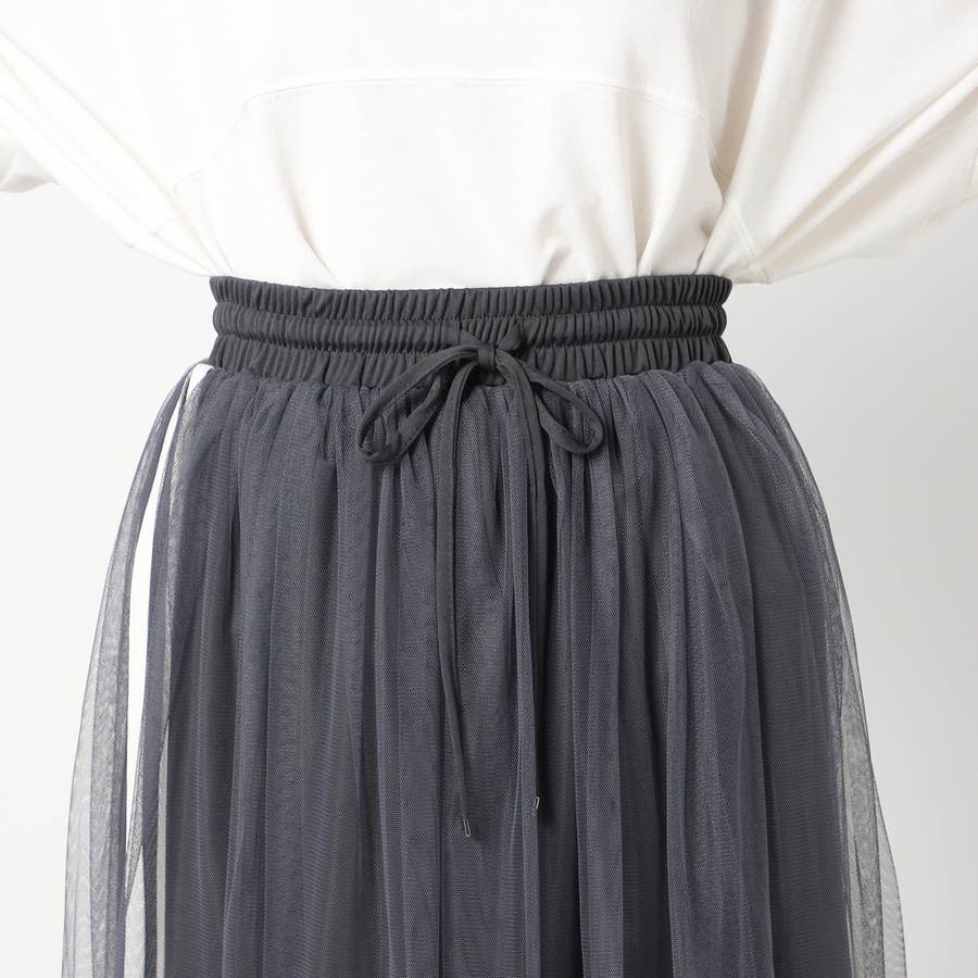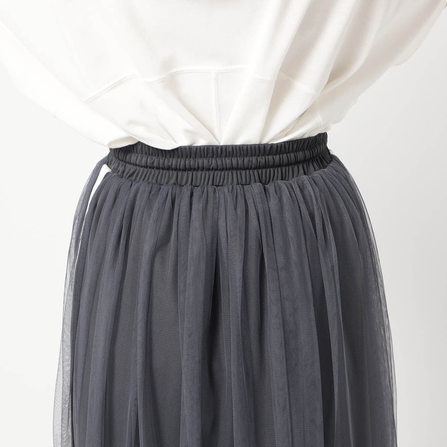 裏地の上にチュールを重ねたレイヤード構造で、動きに合わせてチュールが揺れ、軽やかな印象です。