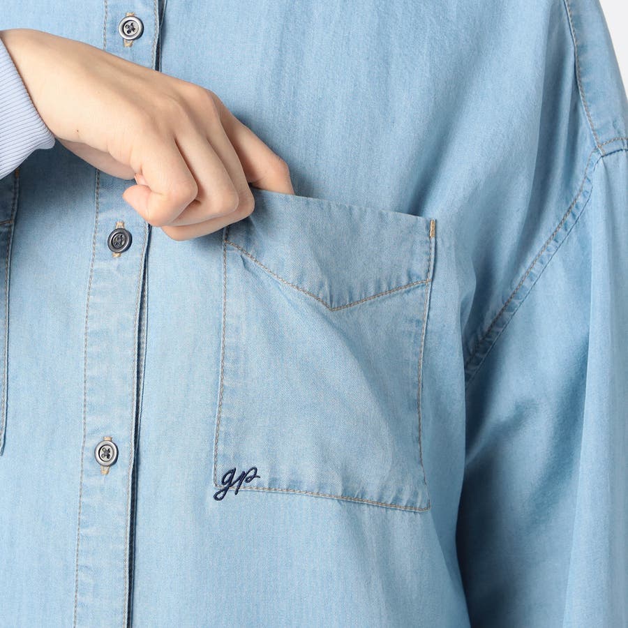 デニムシャツはメンズライクでカジュアルになりがちですが、さらっとした薄手のセルロース素材のデニムなので、大人の女性らしい抜け感が出ます。