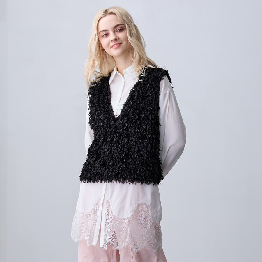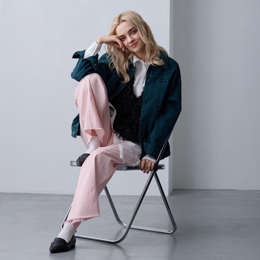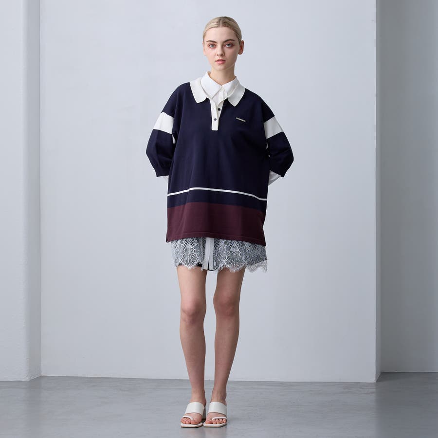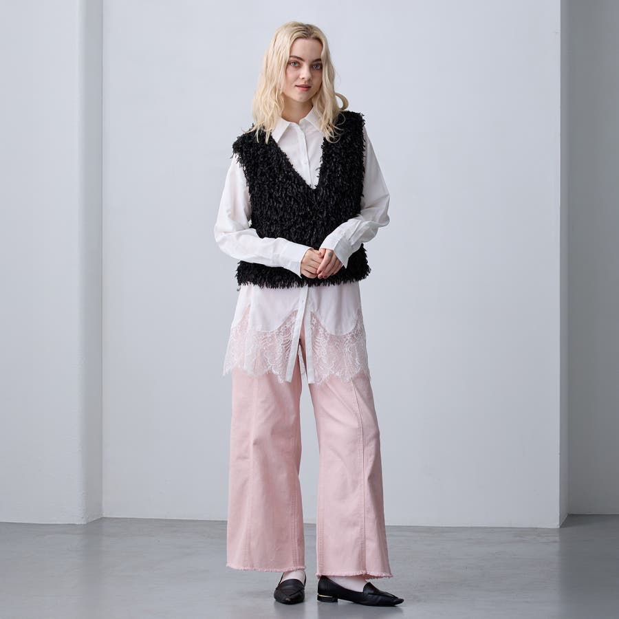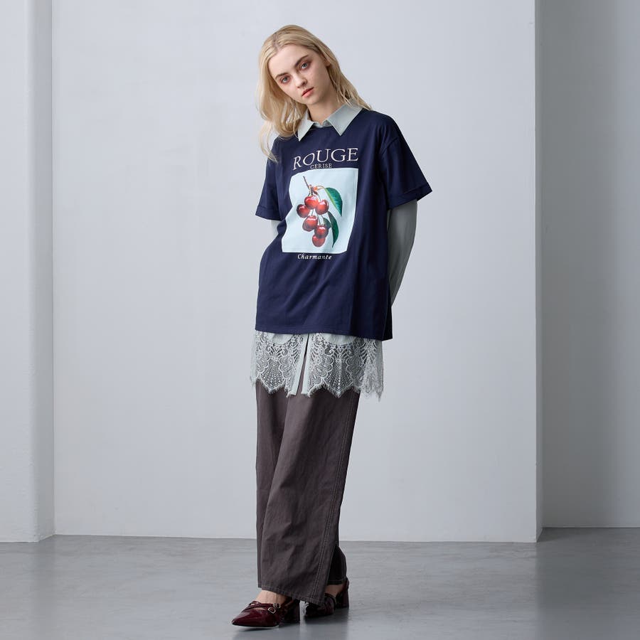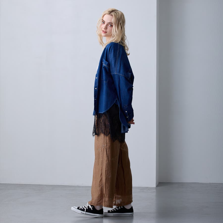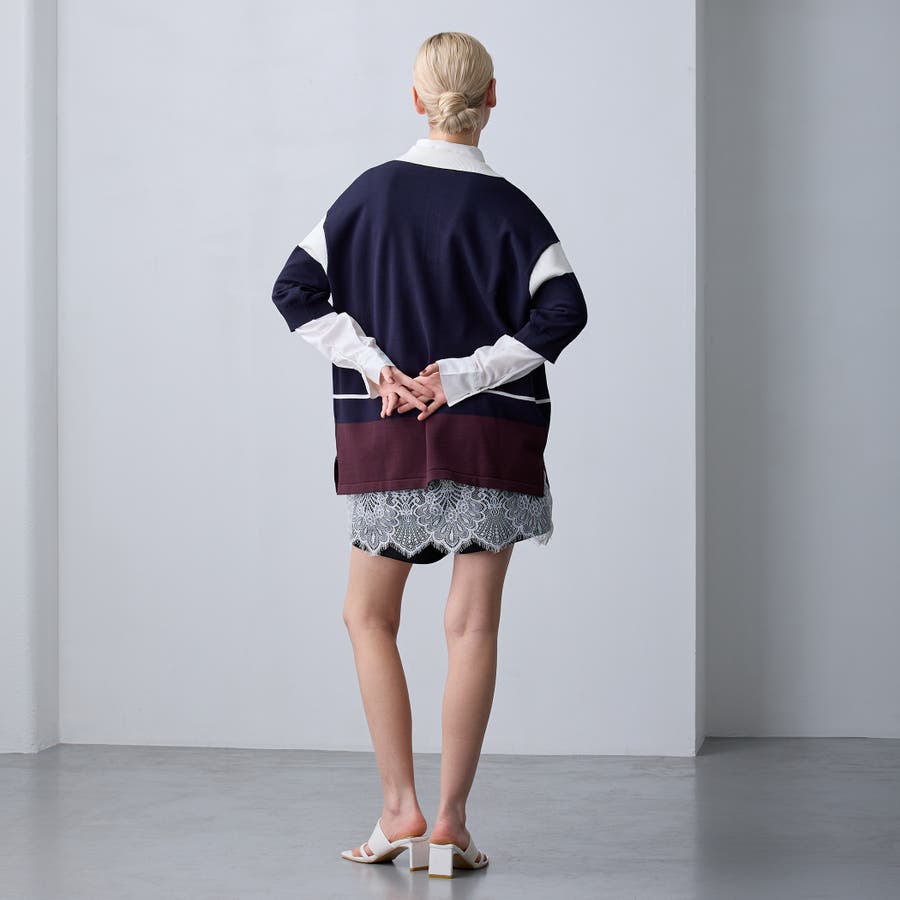 繊細なレースとのドッキングはトレンド感があり、デニム合わせのカジュアルなスウェットの中にレイヤードするだけで綺麗めカジュアルに!
