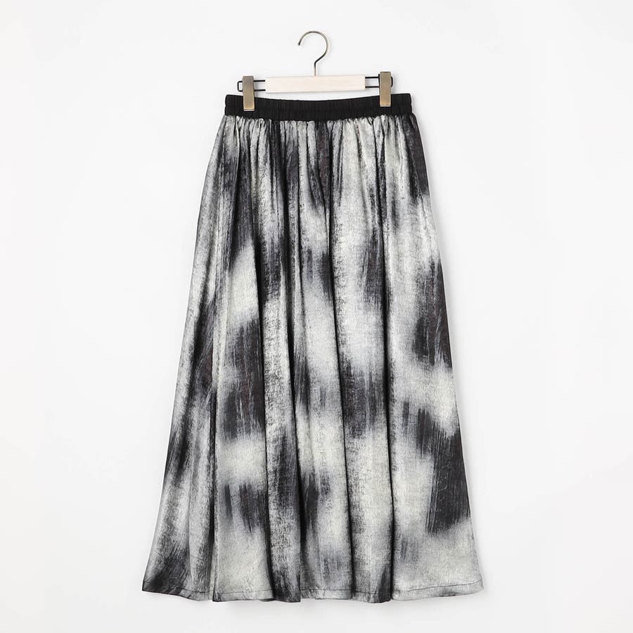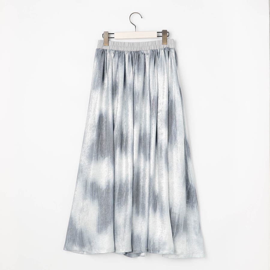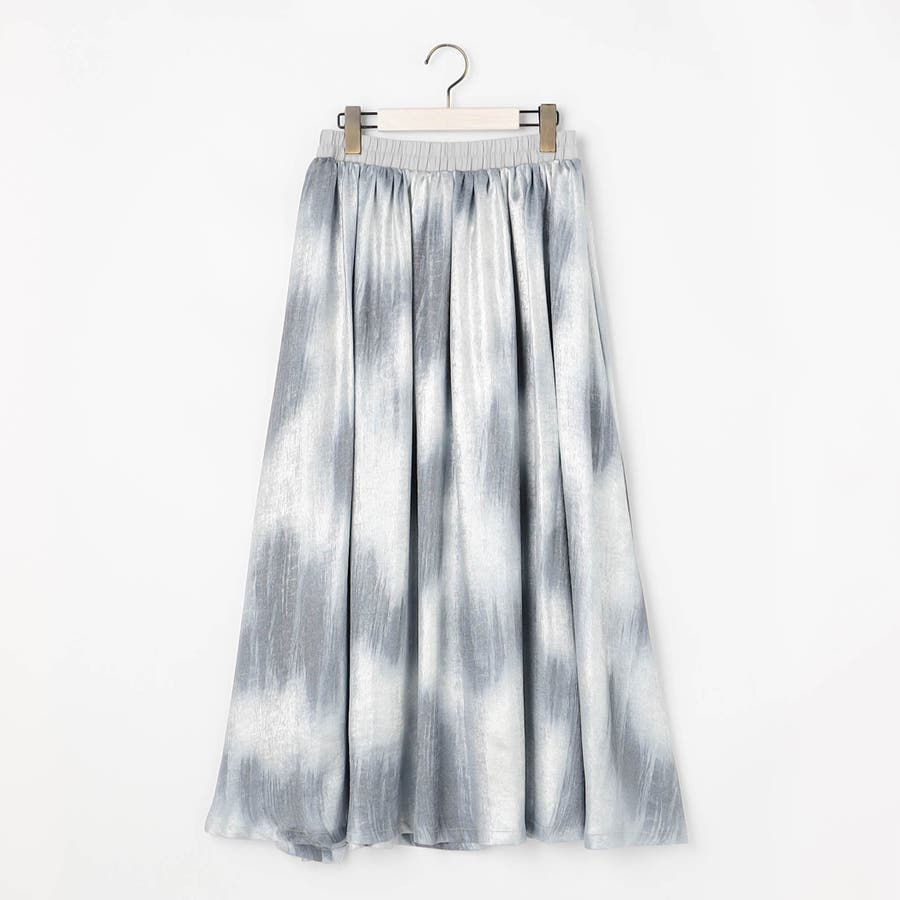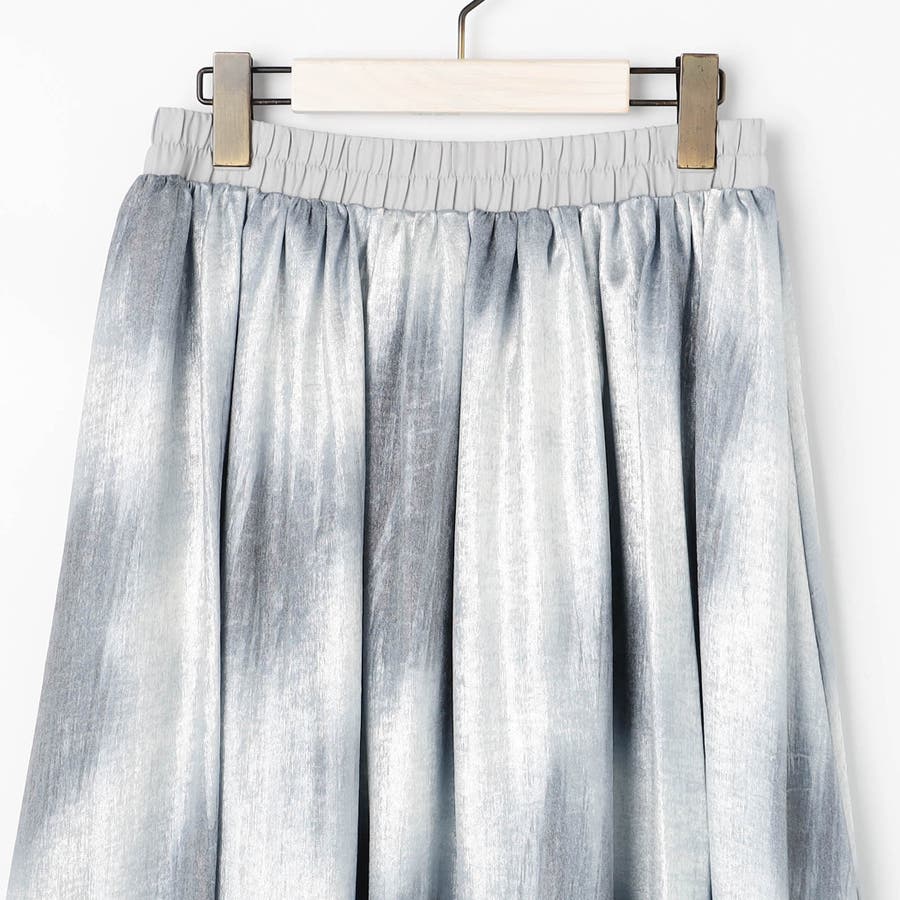 【WALDO】ウエストゴムムラ染め光沢プリントギャザーフレアースカート