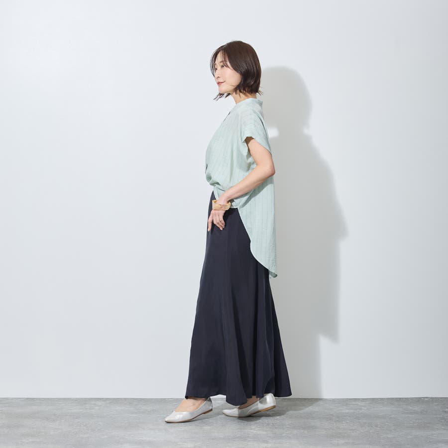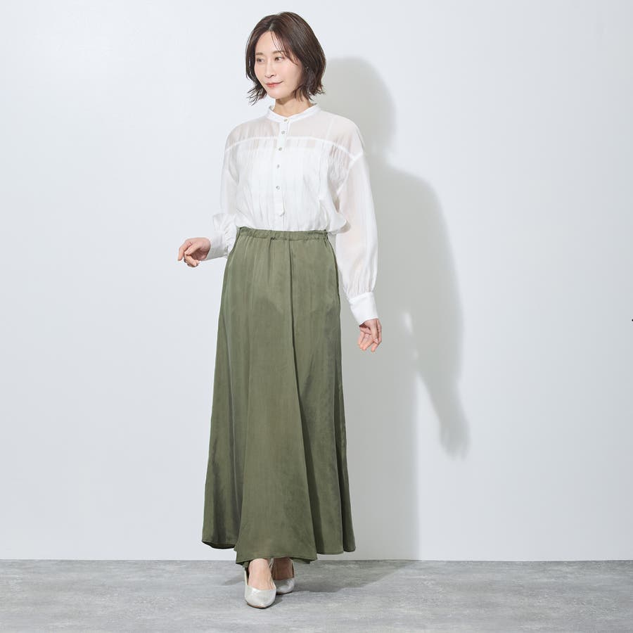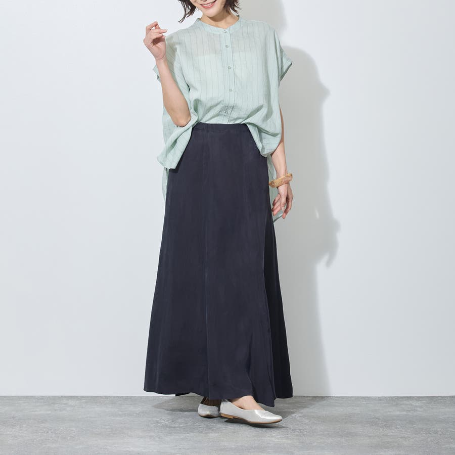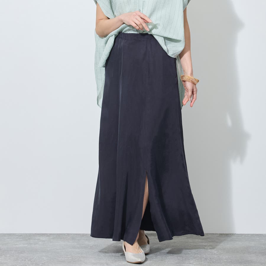 シンプルで大人な雰囲気を楽しめる、揺れるような落ち感のマーメードスカート。