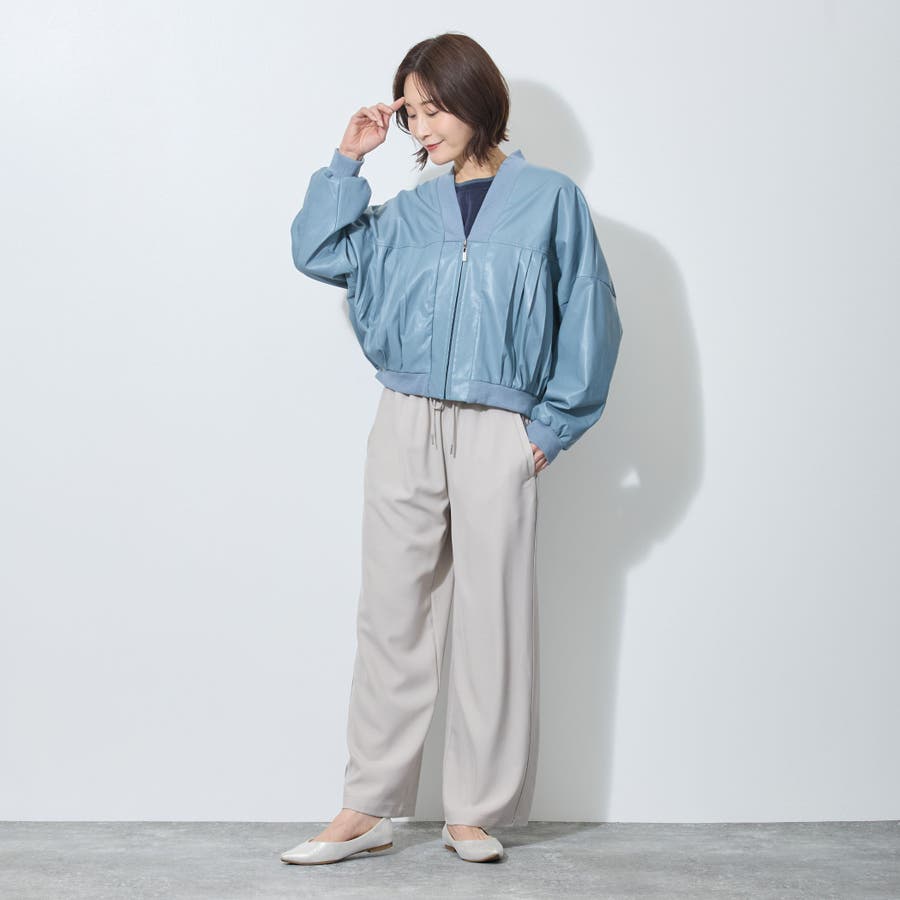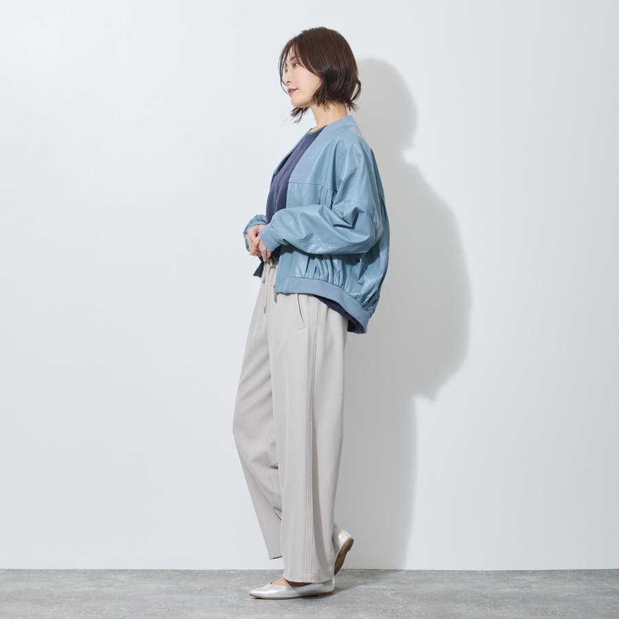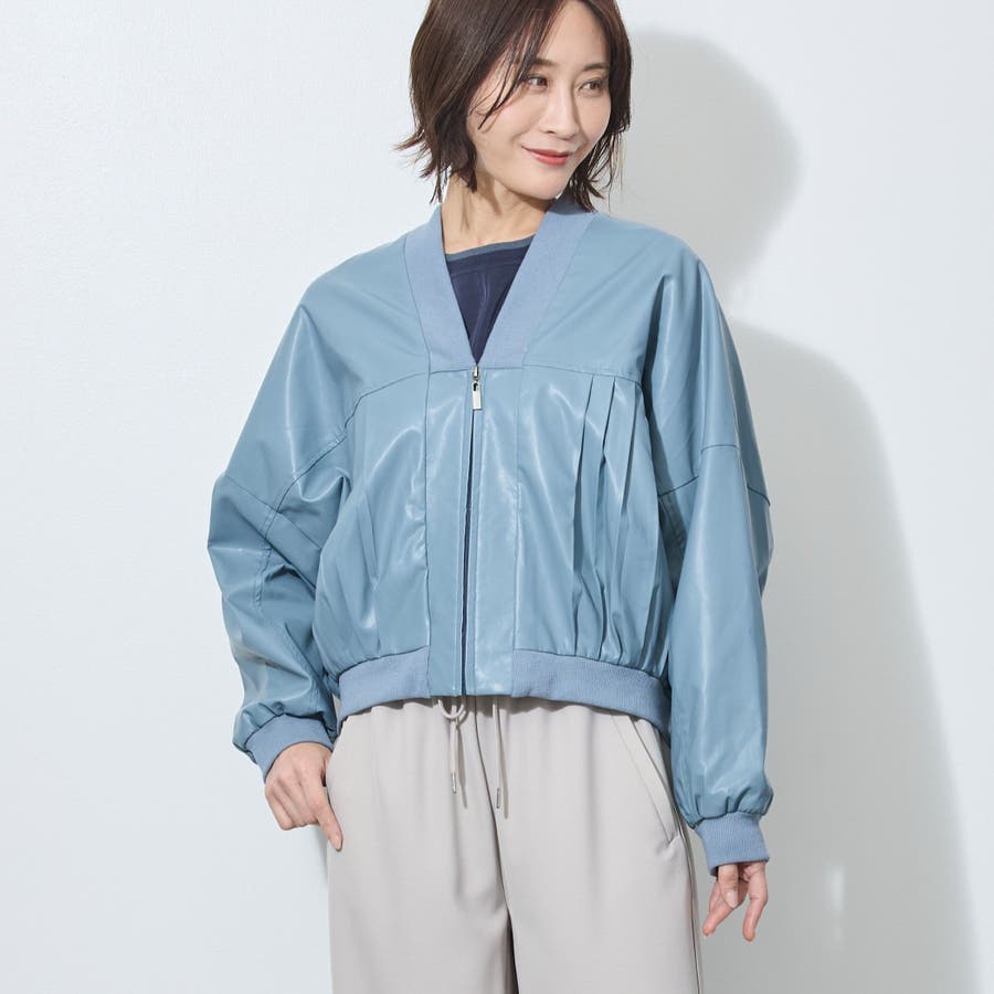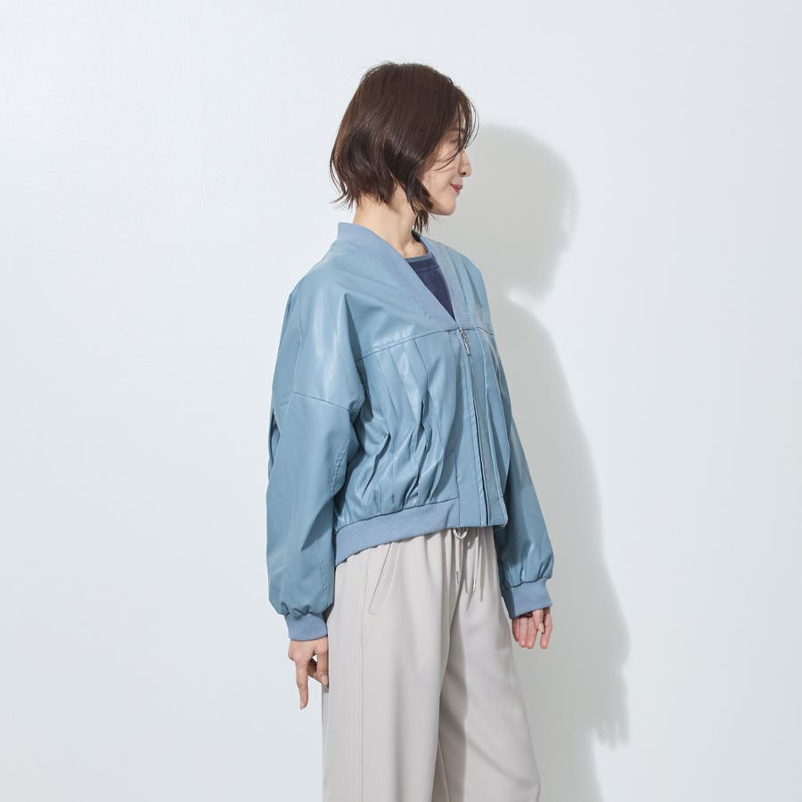前後身頃に細めのプリーツを施したブルゾン