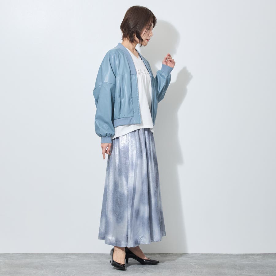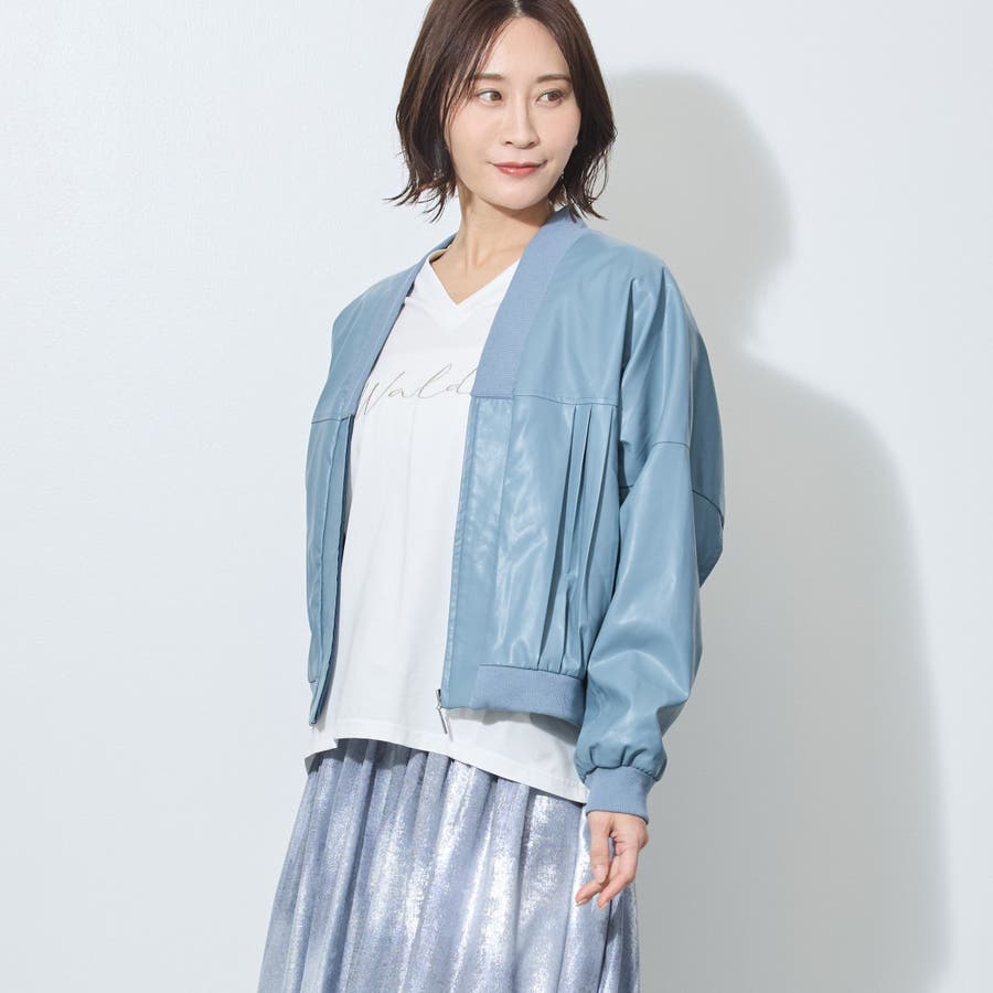 【WALDO】合皮プリーツジップアップブルゾン