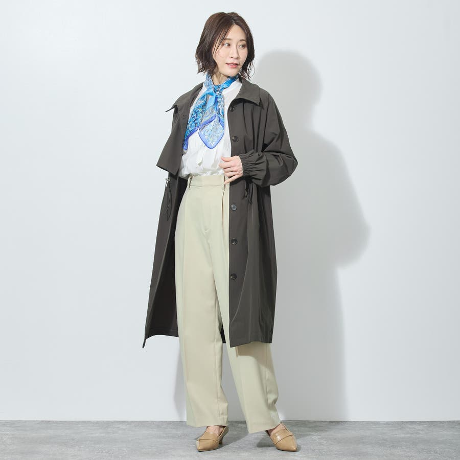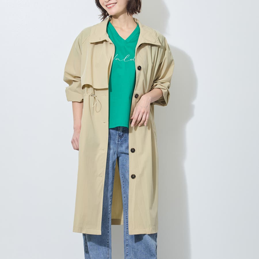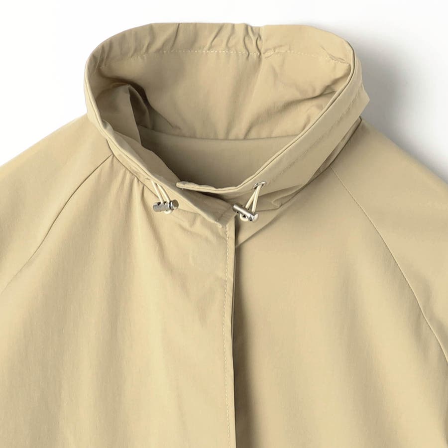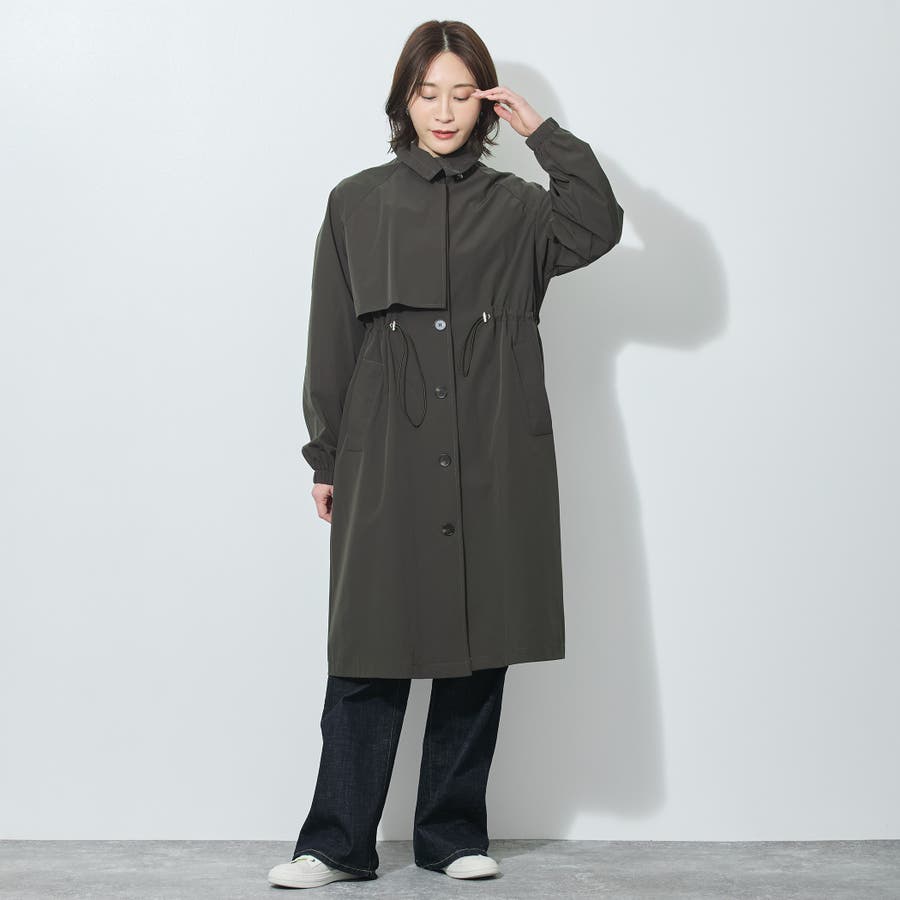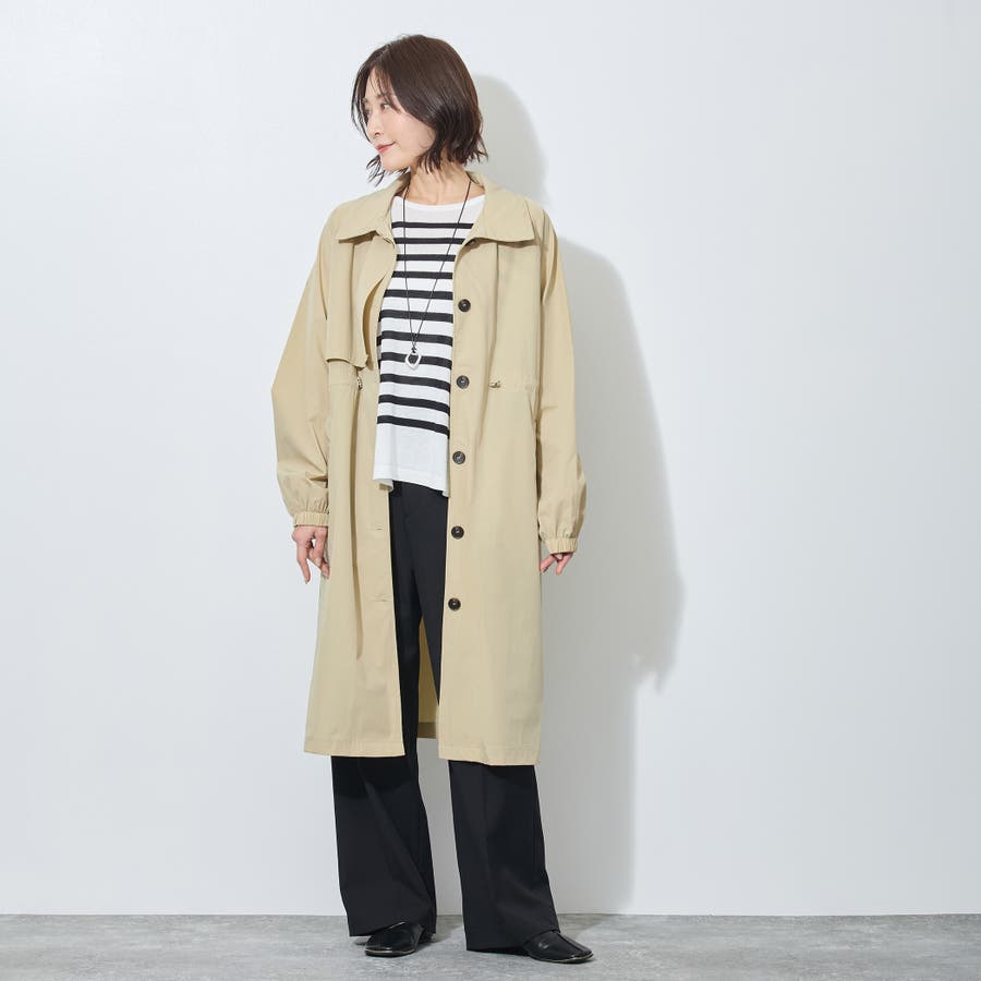 バックスタイルはアンブレラヨークとセンターベント入り。衿端とウエストのゴムスピンドルがデザインポイントで、シンプル過ぎないのがうれしい万能コートです。