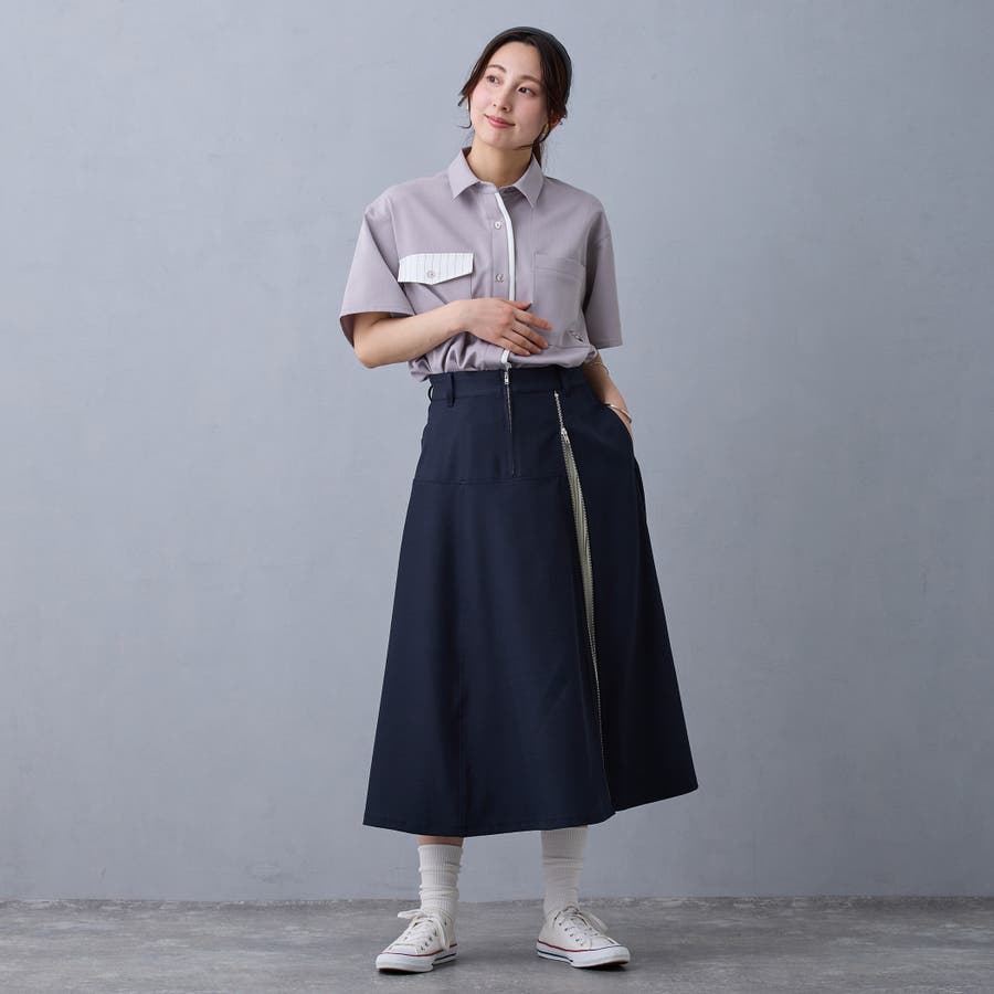ファスナーの明け具合でお好みのシルエットにしていただけます。