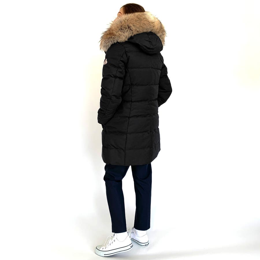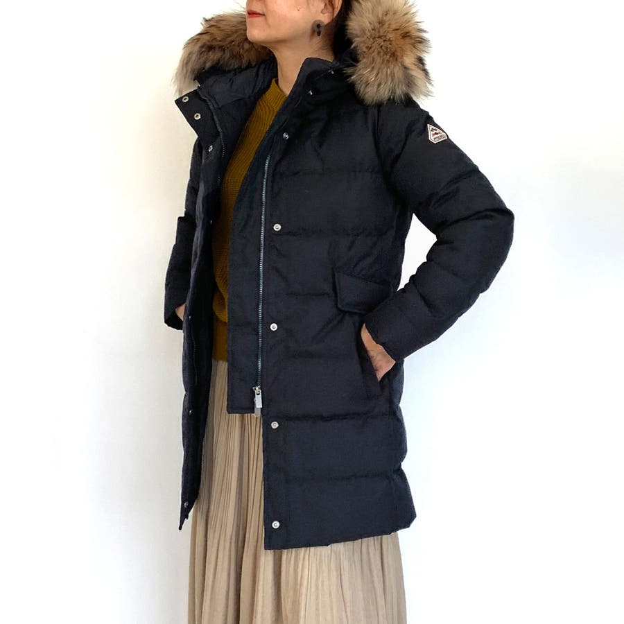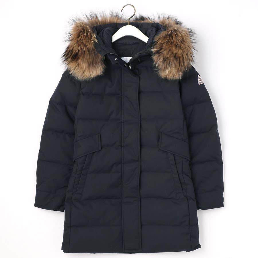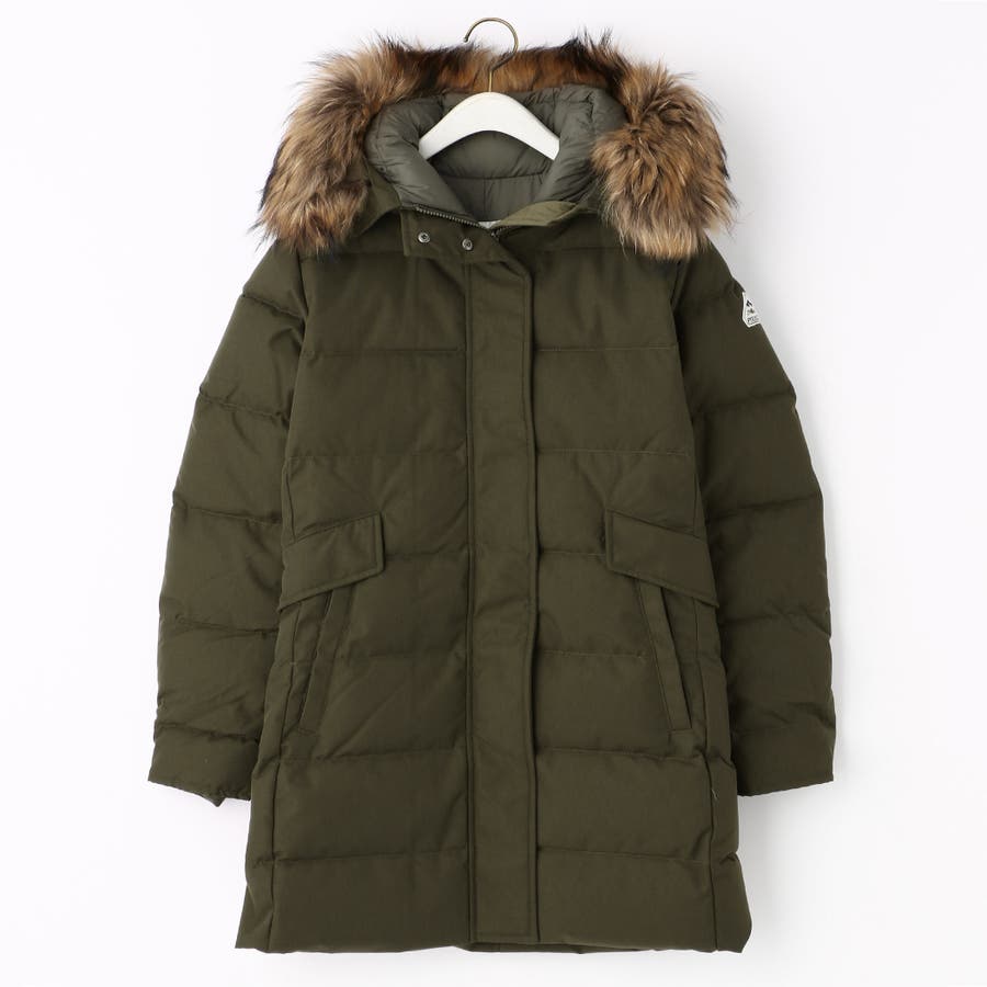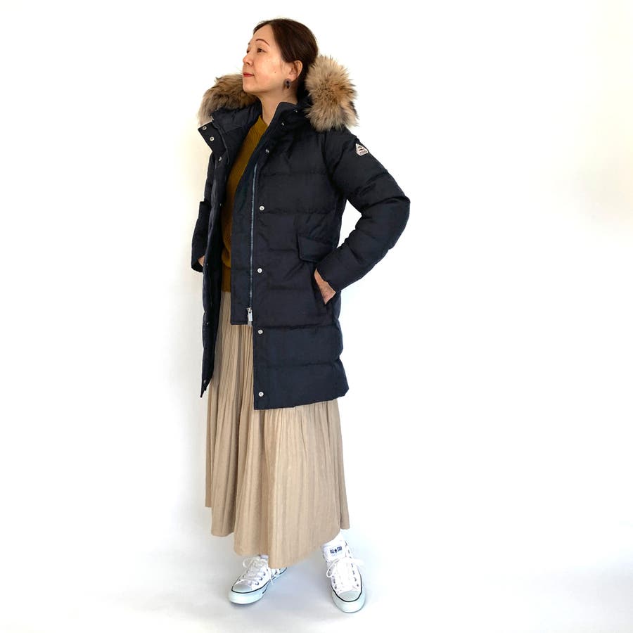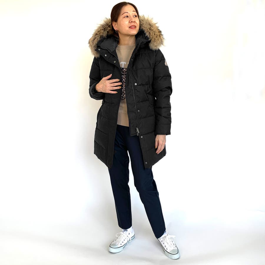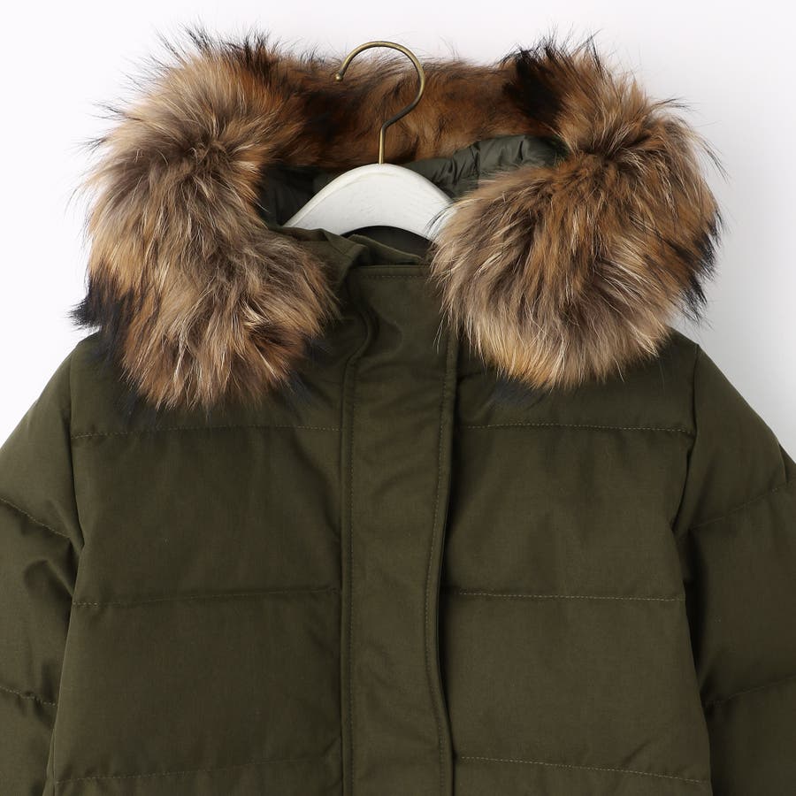| 素材 | 表地:ポリエステル100% 裏地:ナイロン100% 詰物:ダウン90% フェザー10% 毛皮部分:タヌキ(フィンラクーン) |