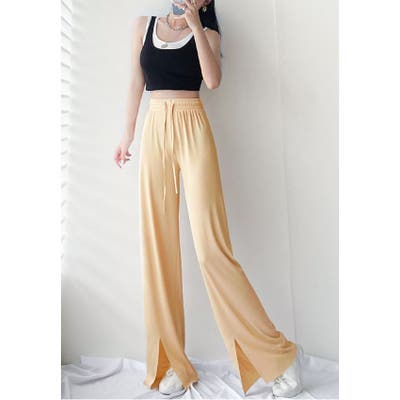 裾スリットワイドパンツ レディース ボトムス