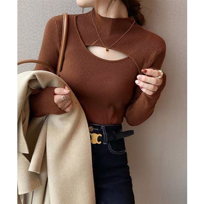 ニットトップス フロントオープンリブニット ハイネック ニット トップス リブニット 長袖 レディース 秋冬 セクシー胸開き 胸元 タイト カットソー 肌見せ セーター リブ インナー 長袖ニット ロンT オフィス オフィスカジュアル フェミニンカジュアル 大人 フリー サイズ シンプル 無地 おしゃれ かわいい きれいめ 上品 春服 秋服 冬服 春 秋 冬 韓国韓国ファッション 10代 20代 30代 40代 50代 ninaetlina ニナエリナ