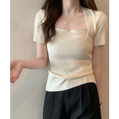 スクエアネックがデコルテラインを綺麗に見せてくれて、顔周りがすっきりとしたシルエットに