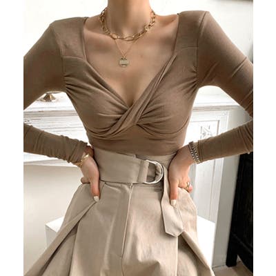 写真で見るより胸のところのデザインがチープであんまりきれいにねじれてませんでした。ただ薄手の長袖がほしかったのでこれから来て行こうと思います