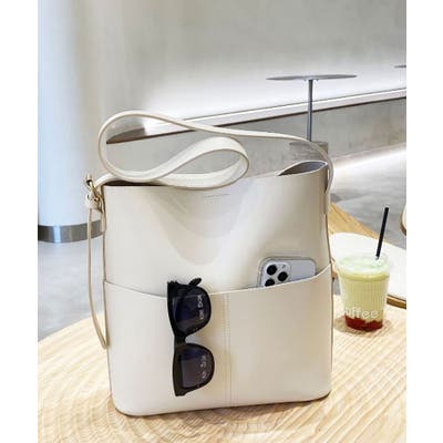 外ポケット付きフェイクレザートートバッグ レディース オルチャン