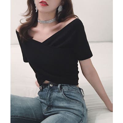 肩だしアレンジして着ると胸元を美しく見せて、女性らしい華奢感をアピール