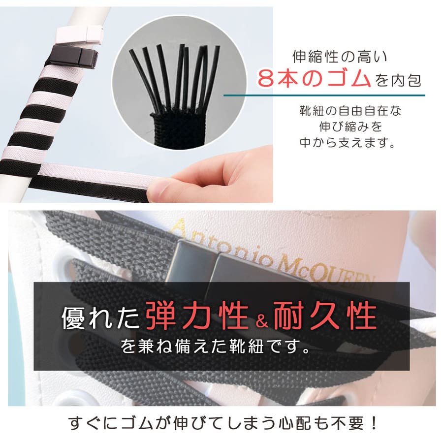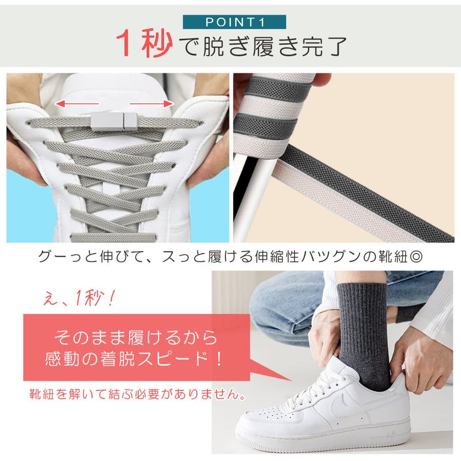 着脱時の靴紐を結ぶ面倒や、靴紐がほどける心配も不要なので一度使うと手放せなくなる靴紐に。