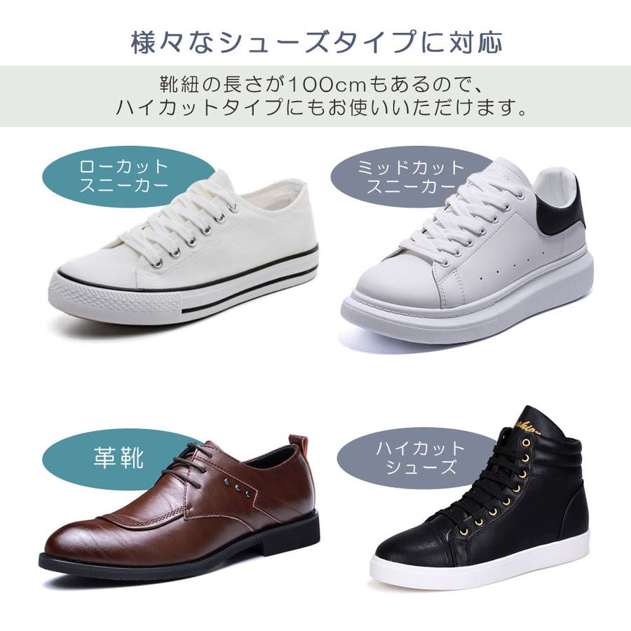 靴紐1本の長さは100cmあるので、ローカット・ミッドカット・ハイカットなど、履き口のデザイン問わずお使いいただけます。