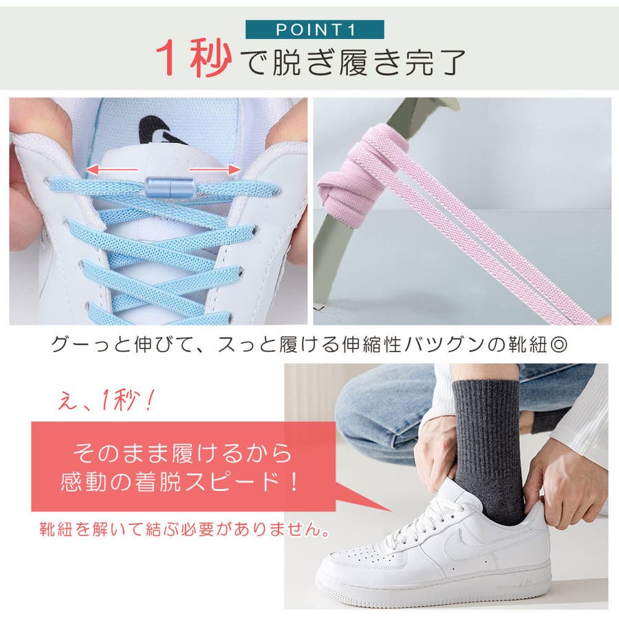 着脱時の靴紐を結ぶ面倒や、靴紐がほどける心配も不要なので一度使うと手放せなくなる靴紐に。