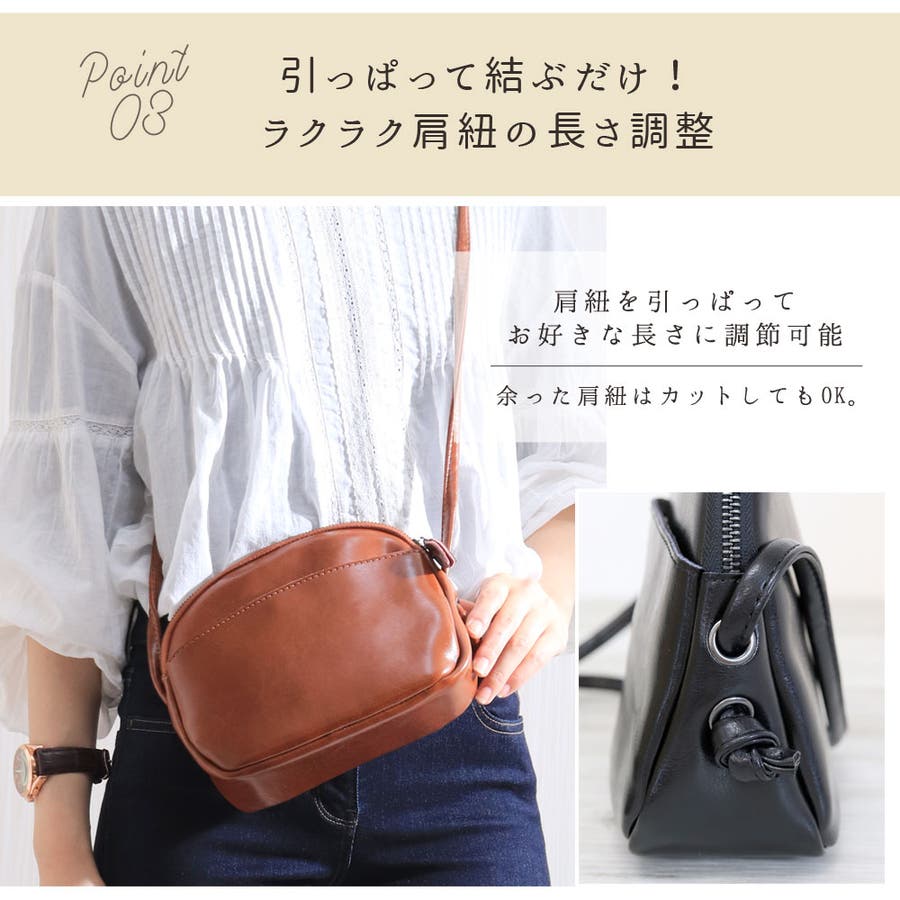 ショルダー紐は引っ張って好きな長さに調節可能。使いやすい長さに変更してCUTすることにより調整可能です。