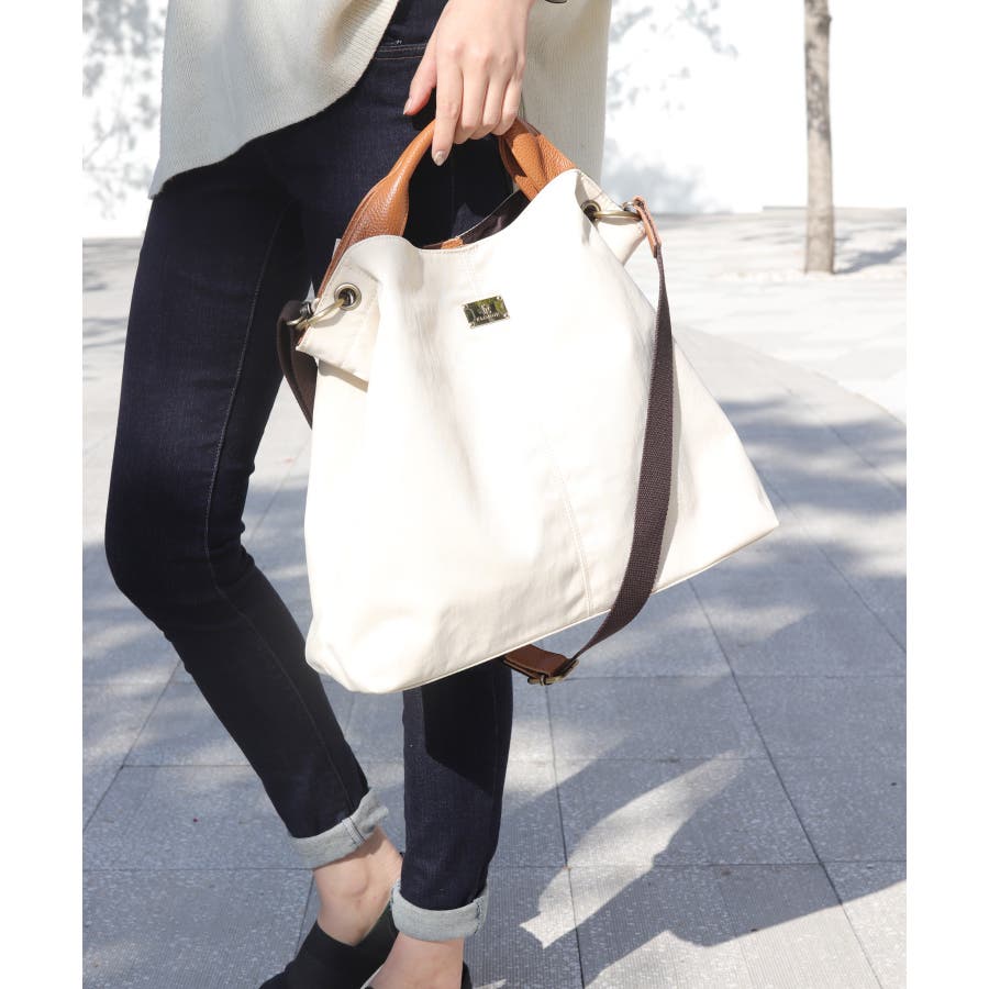 ・サイドリングホール付きの2wayタイプ、容量に合わせたり、スタイリングでシルエットを変更可能です