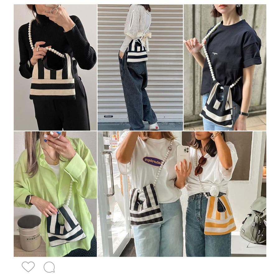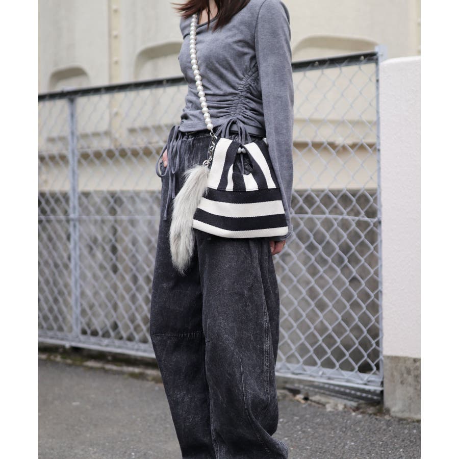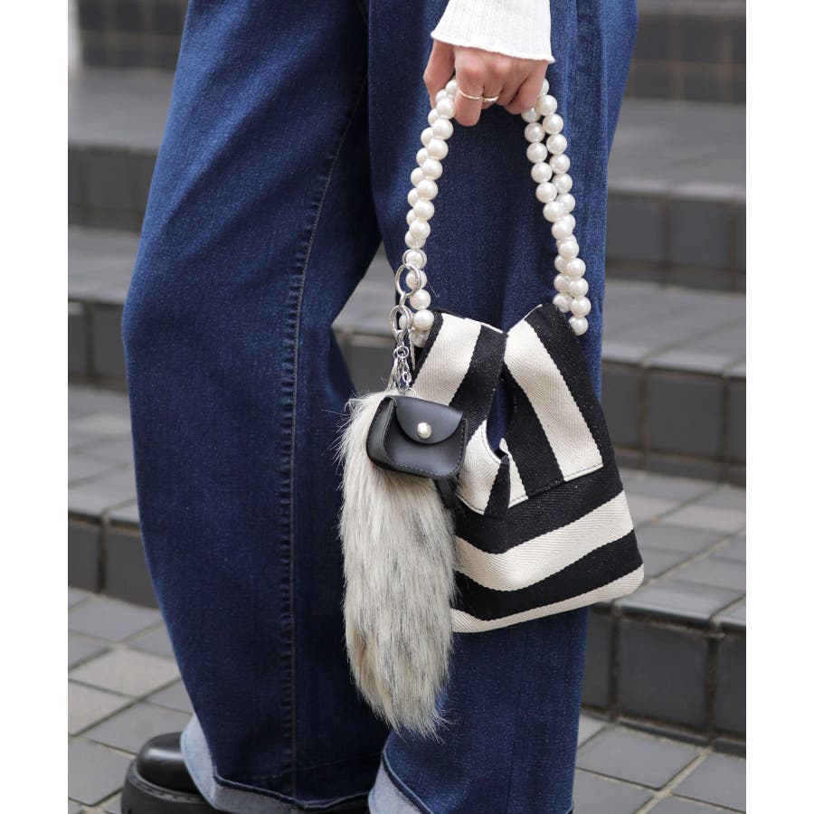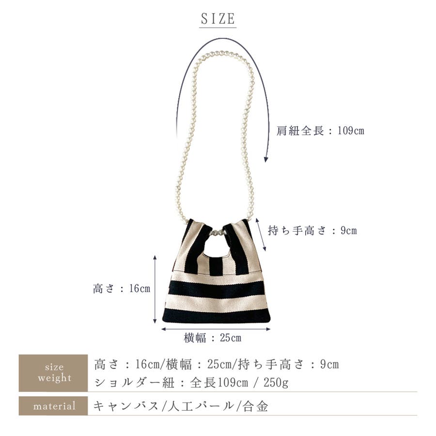 パールチェーンのストライプ柄ミニショルダーバッグ/小さめハンドバッグ。
