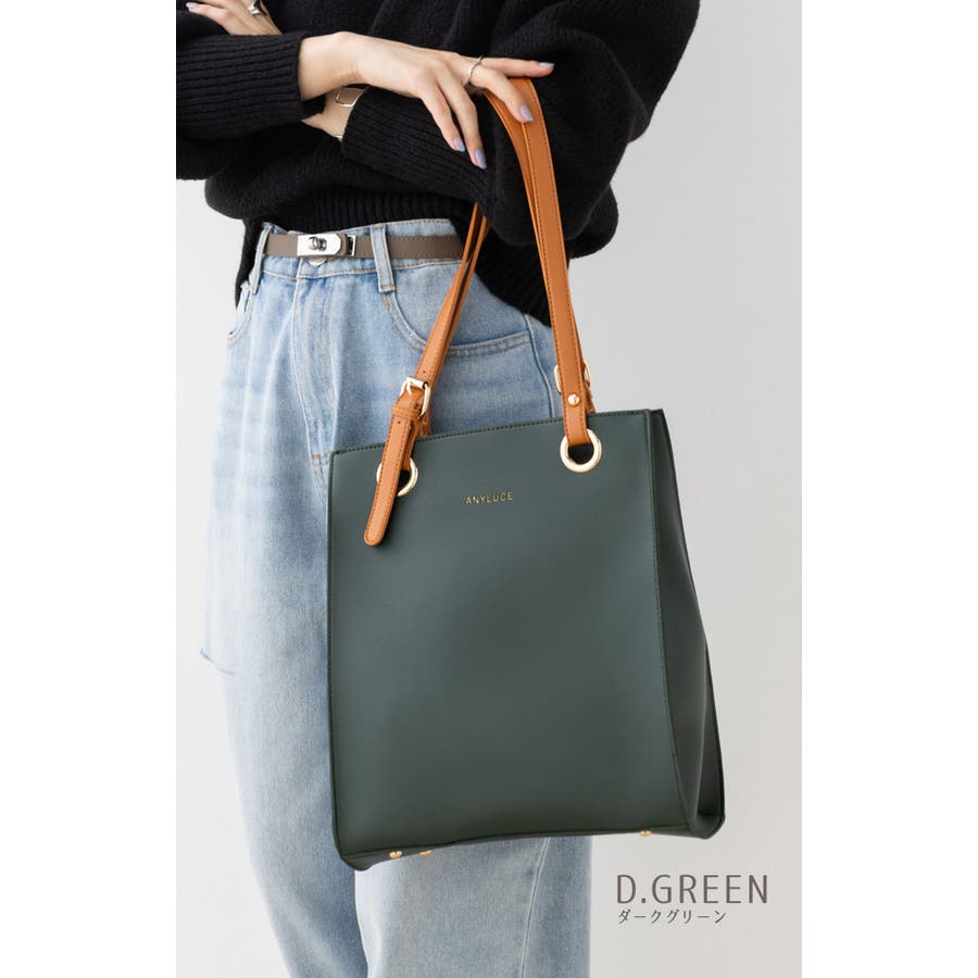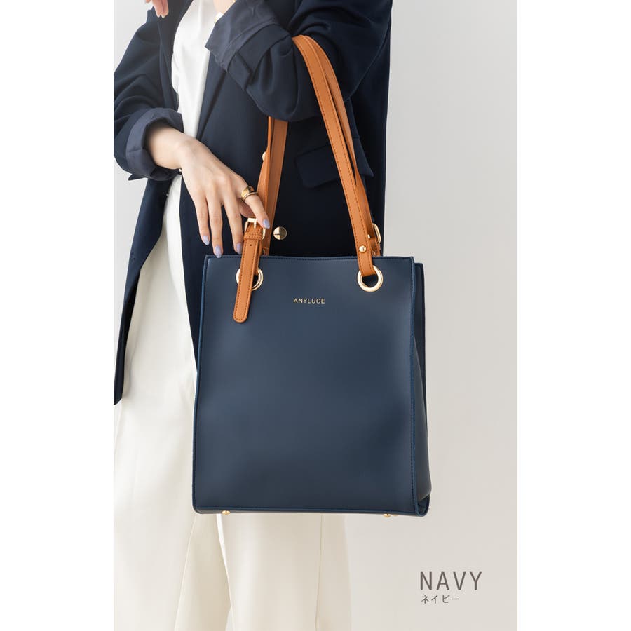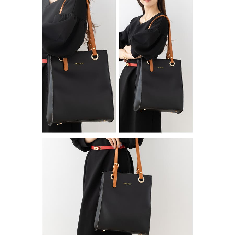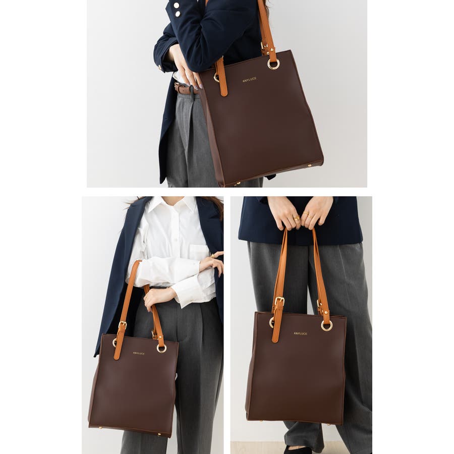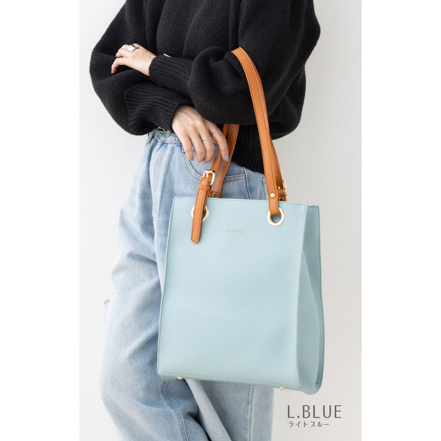 配色スクエアフォルムのPUレザートートバッグ。