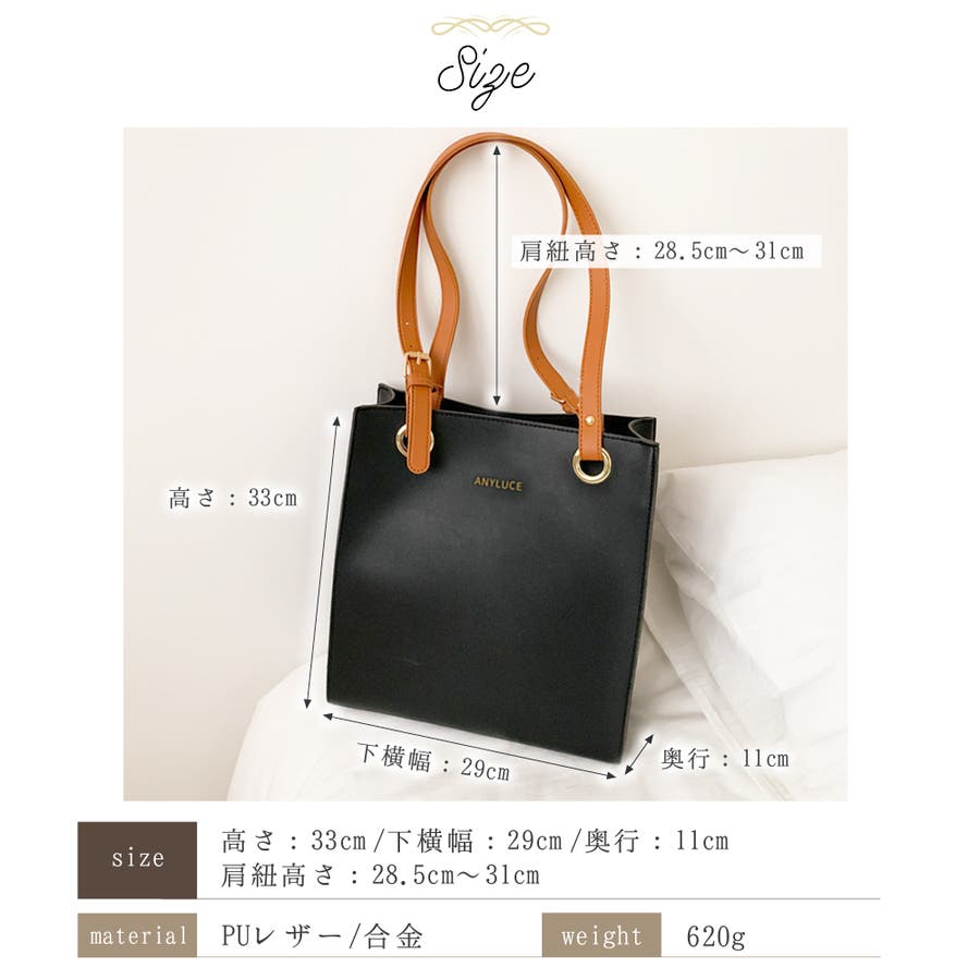 投稿日:2024.03.17A4サイズがぴったりおさまる大きさです。作りもしっかりしています。大量の荷物は入らなそうですが、通勤に必要な最小限の荷物はちゃんと入ります。綺麗めな服装に合わせやすそうです。