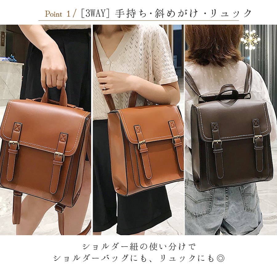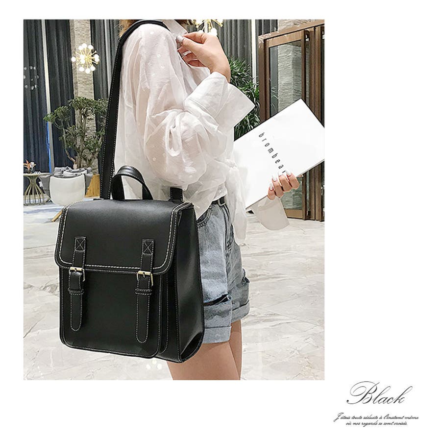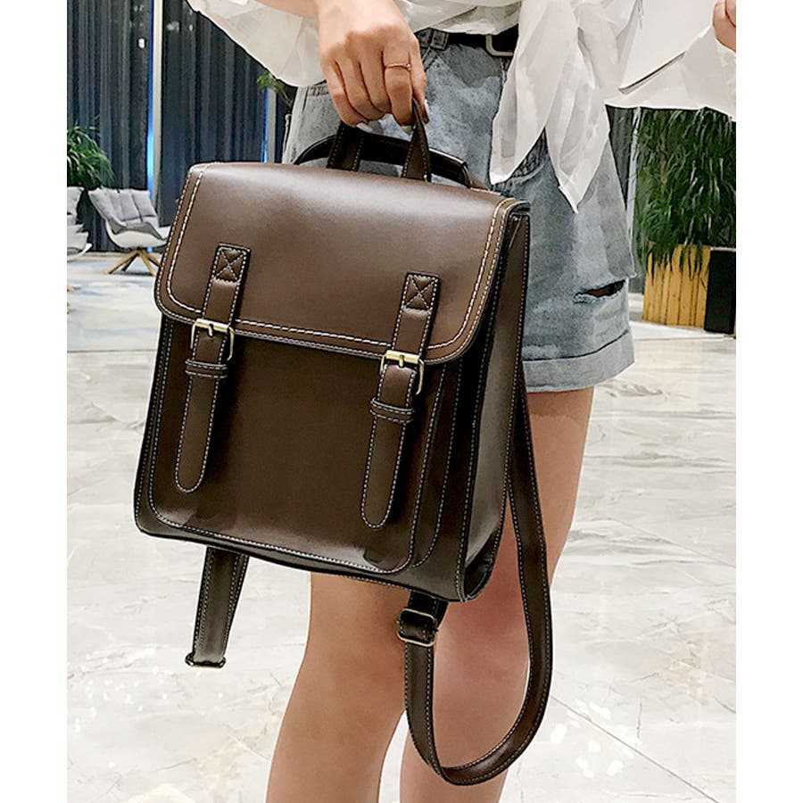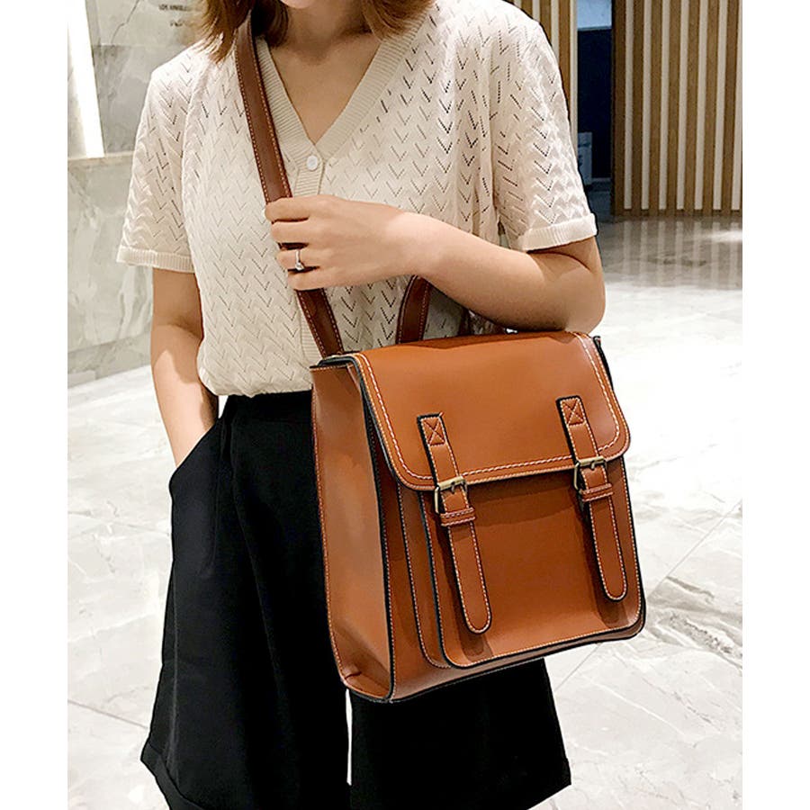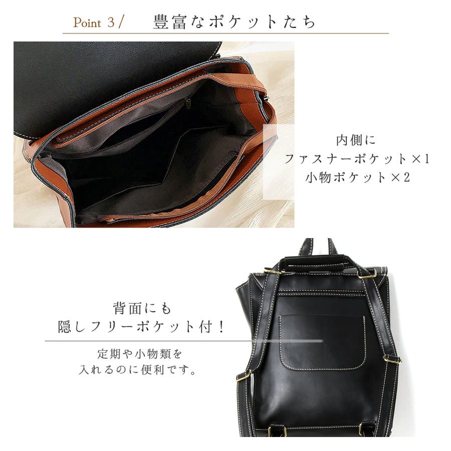 ランドセル風ステッチレザーリュック/ショルダーバッグ。