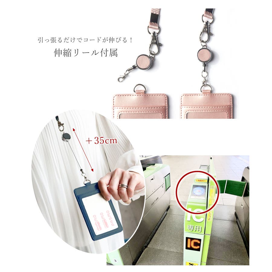 伸縮リール付きなので、カードをケースから出さなくても引っ張るだけで簡単タッチ◎忙しい朝の通勤改札やスマートなカード決済に大活躍間違いなしです。