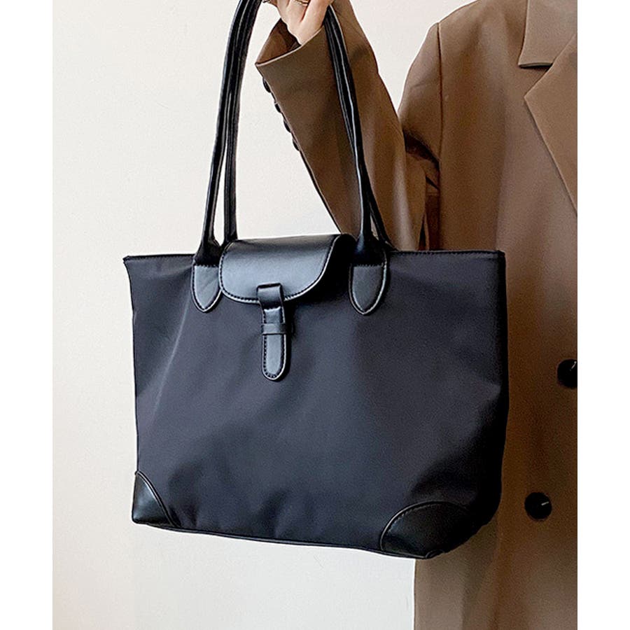 フラップレザーデザインのレディーストートバッグ。