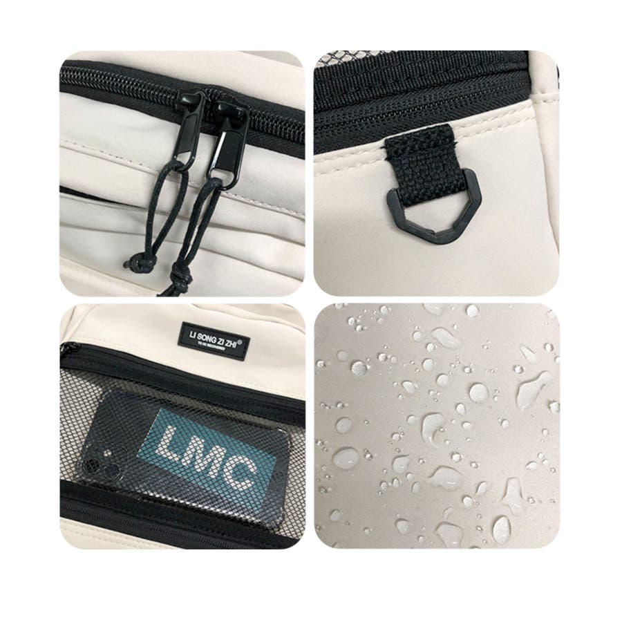 撥水加工を施したナイロン生地を採用し、雨や水に強い設計。