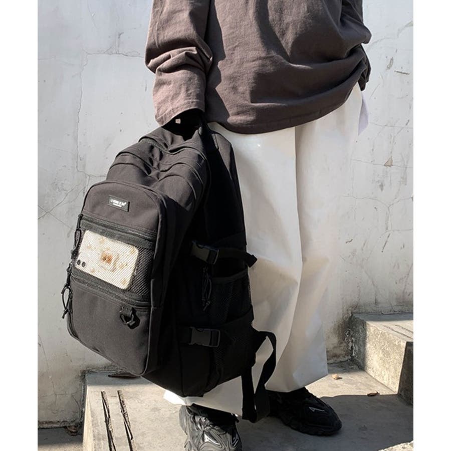 カジュアルテイストのポイントメッシュリュックサック/バックパック。