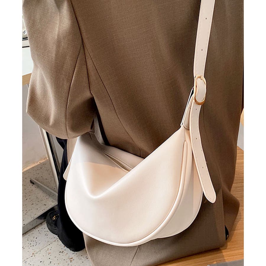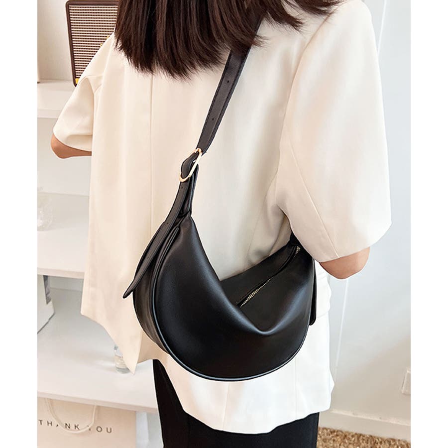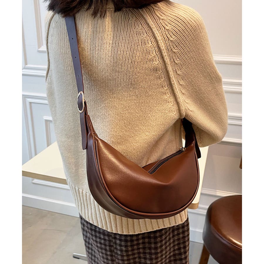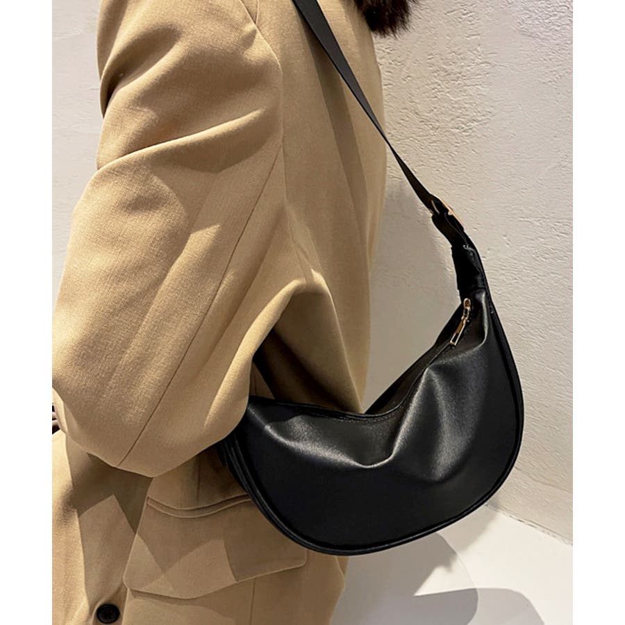マットな質感のPUレザーに、ハーフムーンシルエットが映える大人かわいいデザイン♪