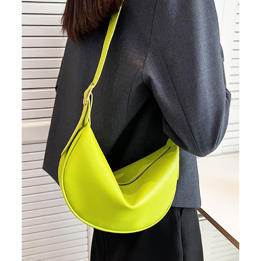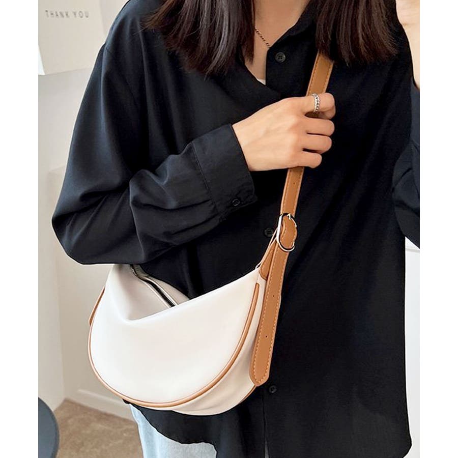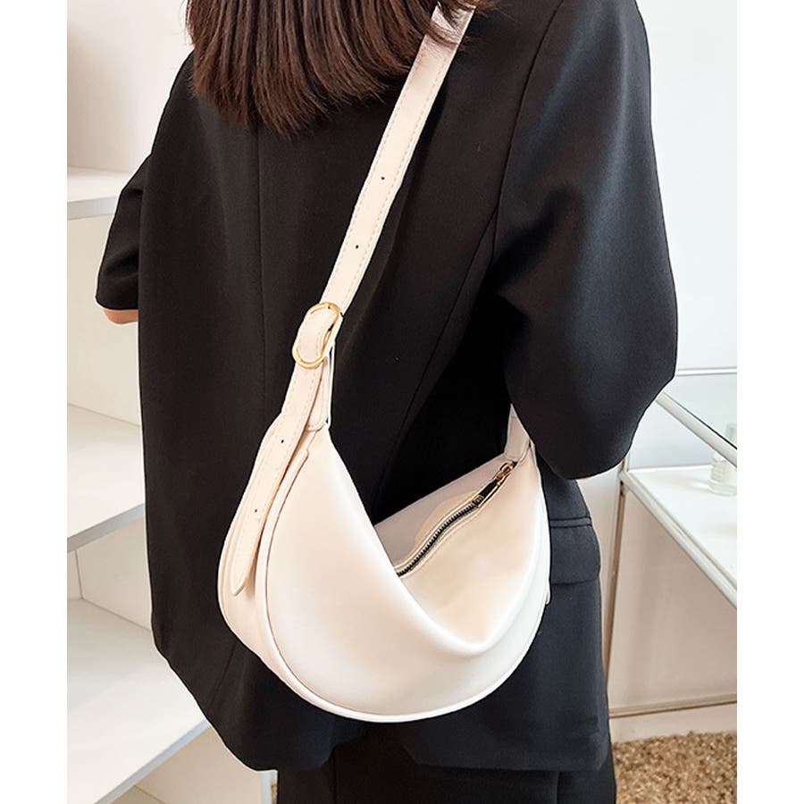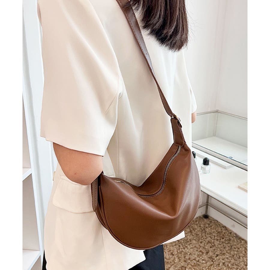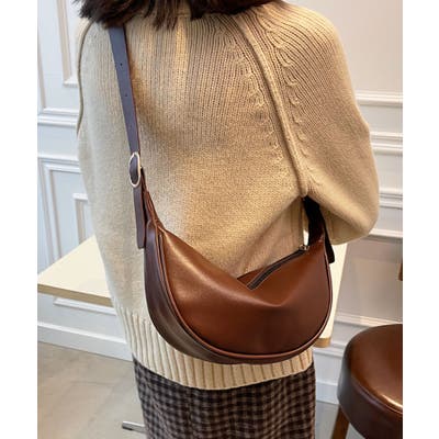 マットな質感のPUレザーに、ハーフムーンシルエットが映える大人かわいいデザイン♪