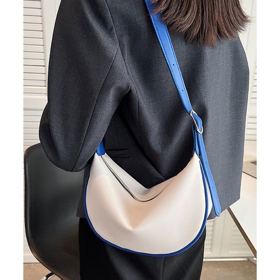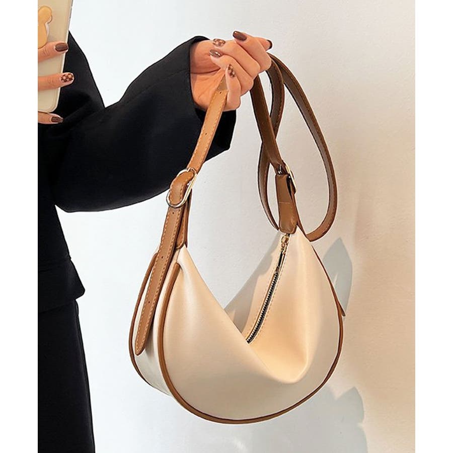 半月フォルムのレザーショルダーバッグ/ハンドバッグ。