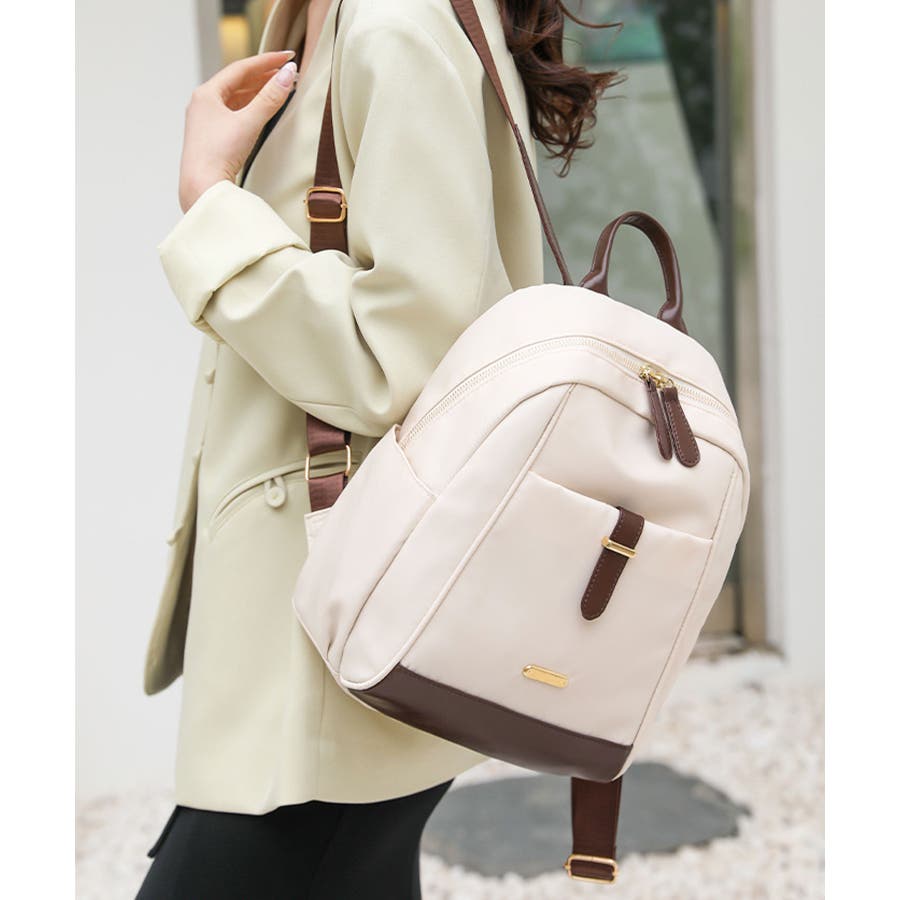 上品なきれいめルックで、オフィスシーンやジャケットコーデにも溶け込むリュックに。