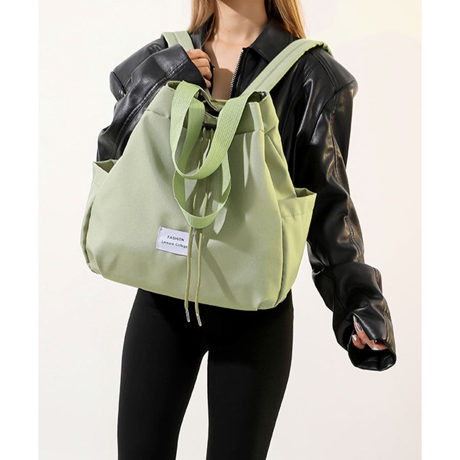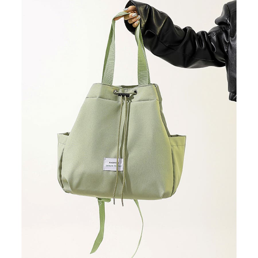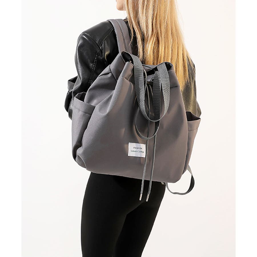 シルエットのかわいさと、側面に水筒やペットボトルが入れられるポケットがついていること、背面に貴重品を入れる用のポケットがついていることが決め手で購入しました。